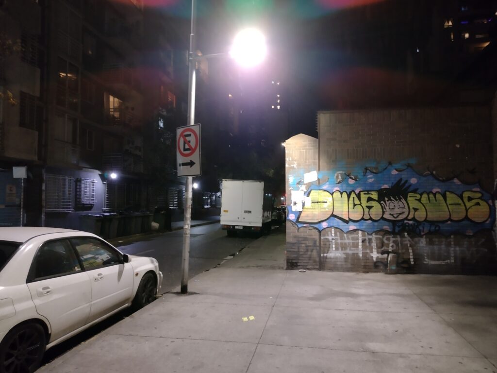 Ya durante la noche la calidad disminuye un poco, lo que más resalta es el bajo nivel de detalle que obtienen las fotografías cuando tenemos poca luz. El ruido también se hace presente y se nota harto. Si activamos el «Night Vision» tendremos mejores resultados aunque un tanto exagerados, hay puntos que terminan más iluminados de lo que realmente lo estaban y se nota una fotografía demasiado artificial. Por otro lado, este método de captura es especialmente lento y debemos tener el teléfono quieto por varios segundos -y se nota-.