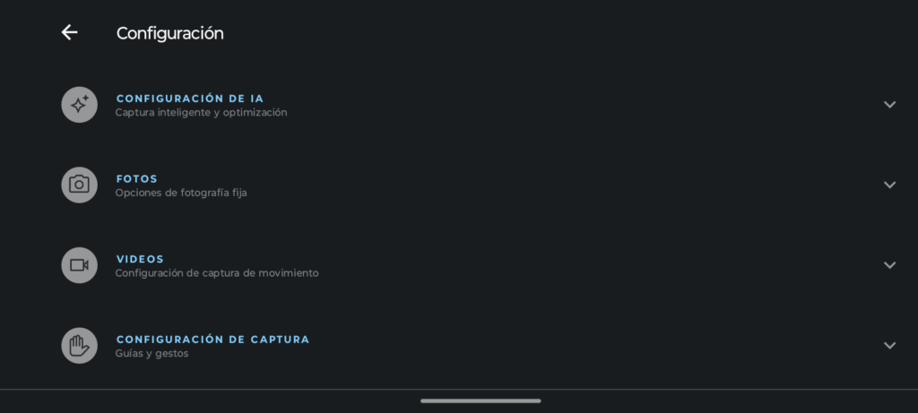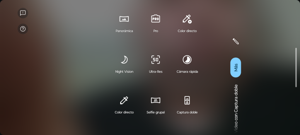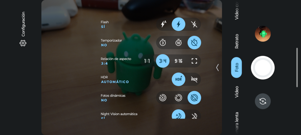 Contaremos con diferentes opciones para cambiar el aspecto, temporizador, flash, HDR, etc.