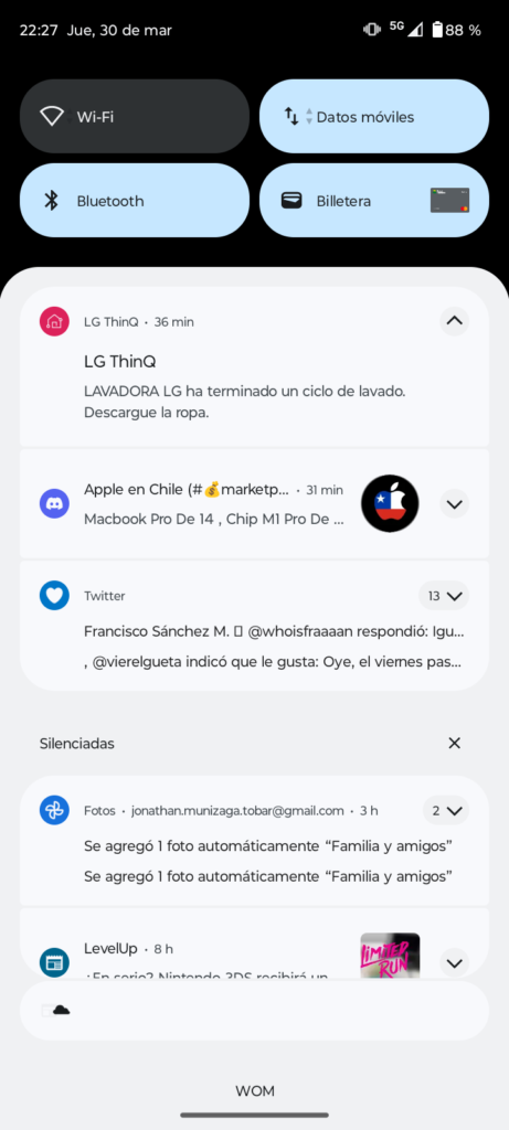 Con un uso normal que le di, el equipo me duró dos días y un poco más de 6 horas de pantalla. Tuve el equipo con 5G, también lo usé con Wi-Fi, lo usé durante dos horas con el GPS encendido (Waze), redes sociales, juegos (emulador Dolphin emulando Nintendo GameCube), videos, música por streaming, etc.