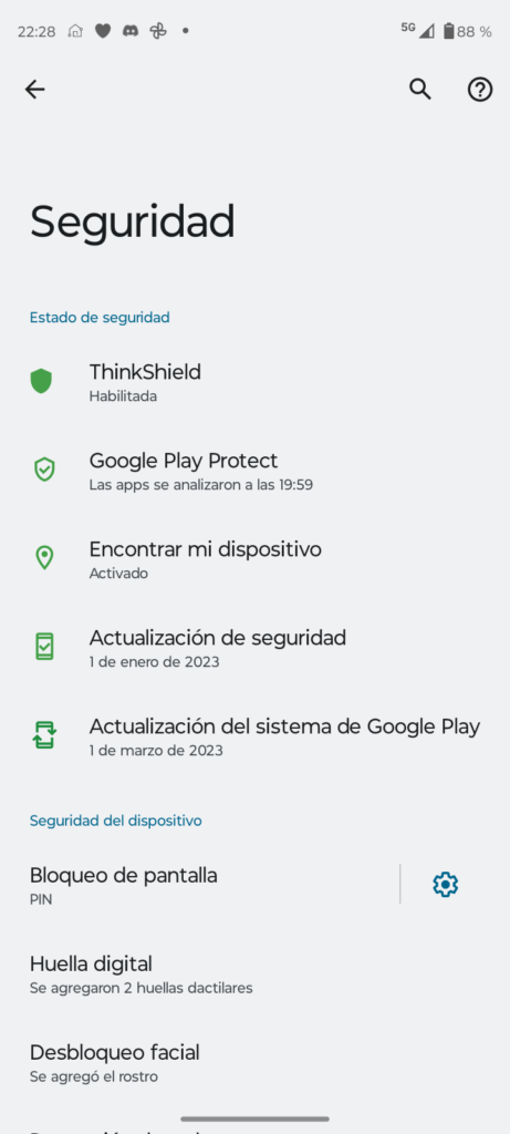 Tenemos dos métodos de bloqueo en este equipo, siendo el primero el lector de huellas dactilares ubicado en el botón de encendido, mientras que el segundo es el que desbloquea el smartphone con reconocimiento facial usando la cámara frontal.