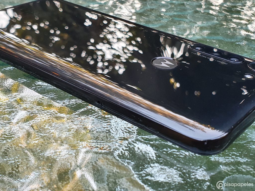 Por el lado trasero tenemos una cubierta de plástico el cual atrae las huellas digitales, pero no en exceso, lo que obviamente se agradece. En este lado también vemos el lector de huellas en la “M”, seguido por sus cámaras que sobresalen un poco de su diseño.