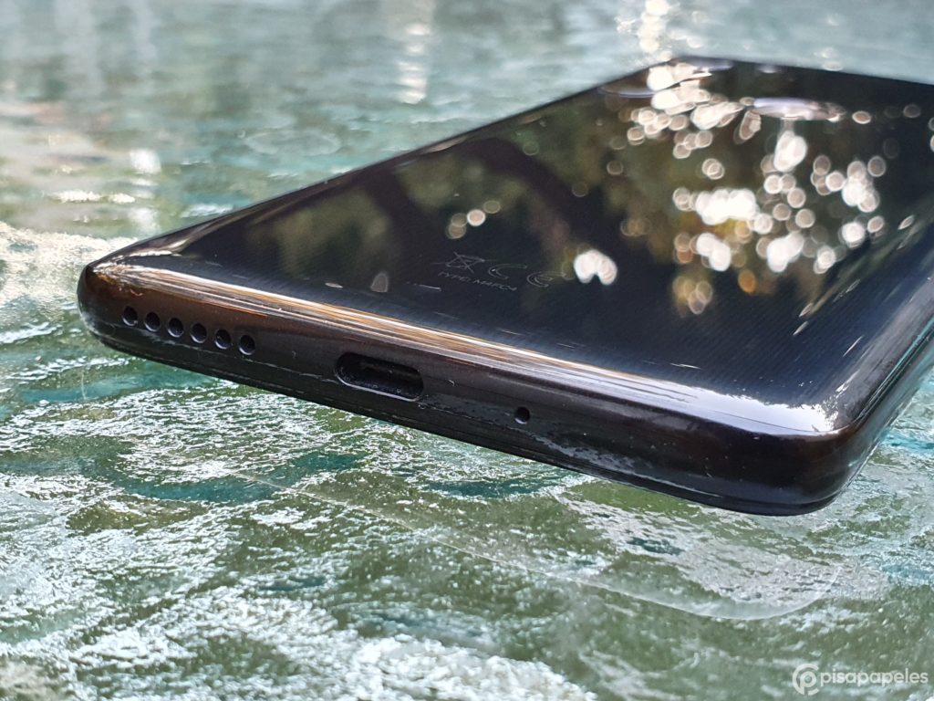 En la parte superior tenemos el segundo micrófono junto con el conector para audífonos, mientras que por el lado inferior tenemos el micrófono principal, conector USB Tipo-C y altavoz principal.