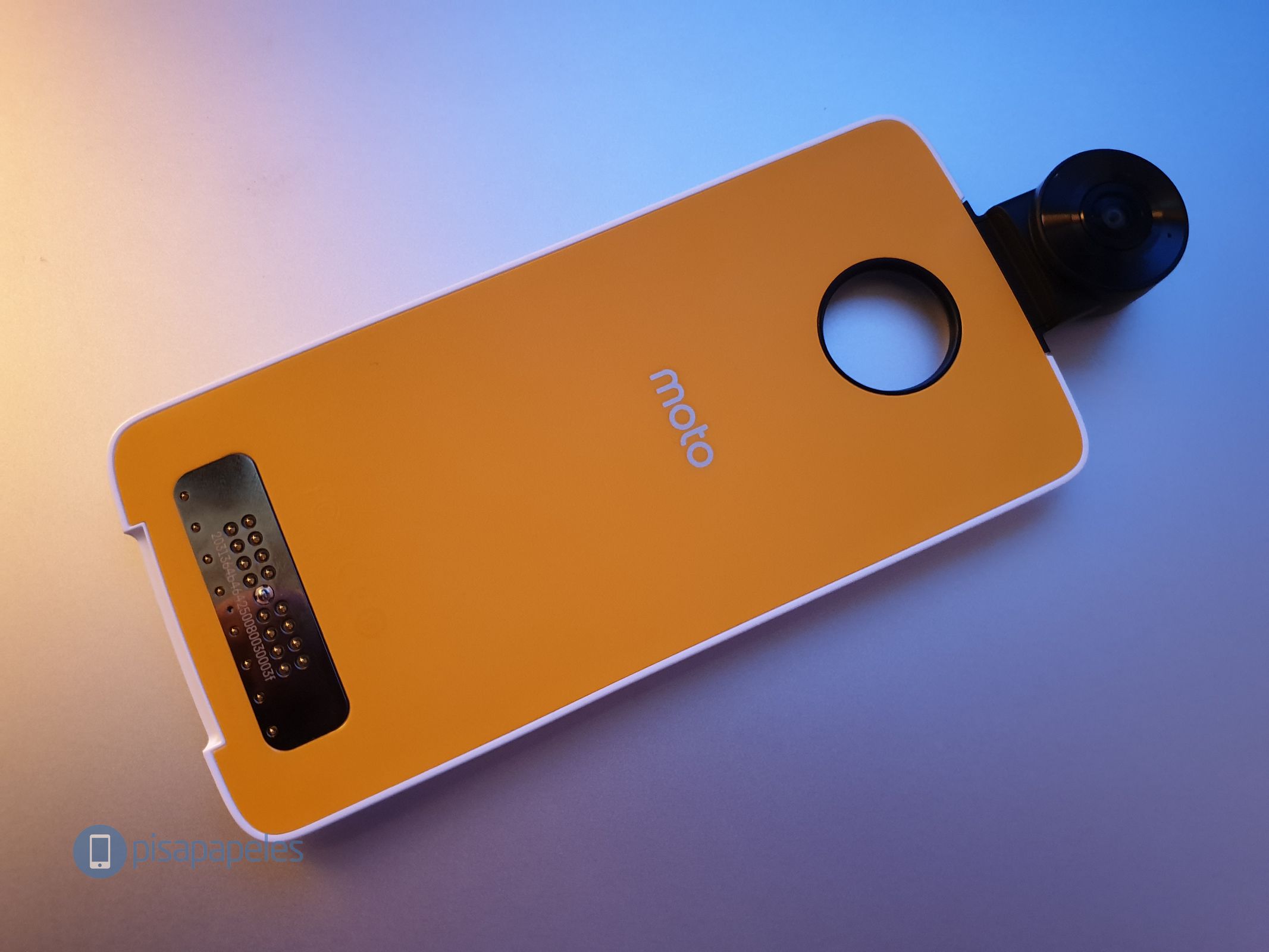 En cuanto a la instalación la verdad es que no hay mucho que comentar, ya que solo bastará con sacar el Moto Mod de su caja y acoplarlo a la parte trasera de nuestro Moto Z compatible. De energía no tenemos que preocuparnos porque usa la carga del smartphone.