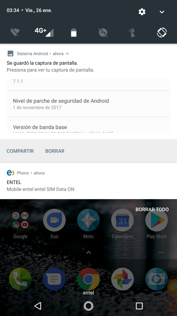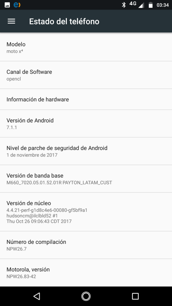 Al momento de adquirir el Moto X4 lo encontrarás con Android 7.1.1 Nougat, pero ya en algunos países se está actualizando a Android 8.0 Oreo. Lamentablemente no fue mi caso y no pude probar el equipo con lo más reciente del sistema operativo móvil de Google. El parche de seguridad Android instalado correspondía al mes de noviembre del 2017.