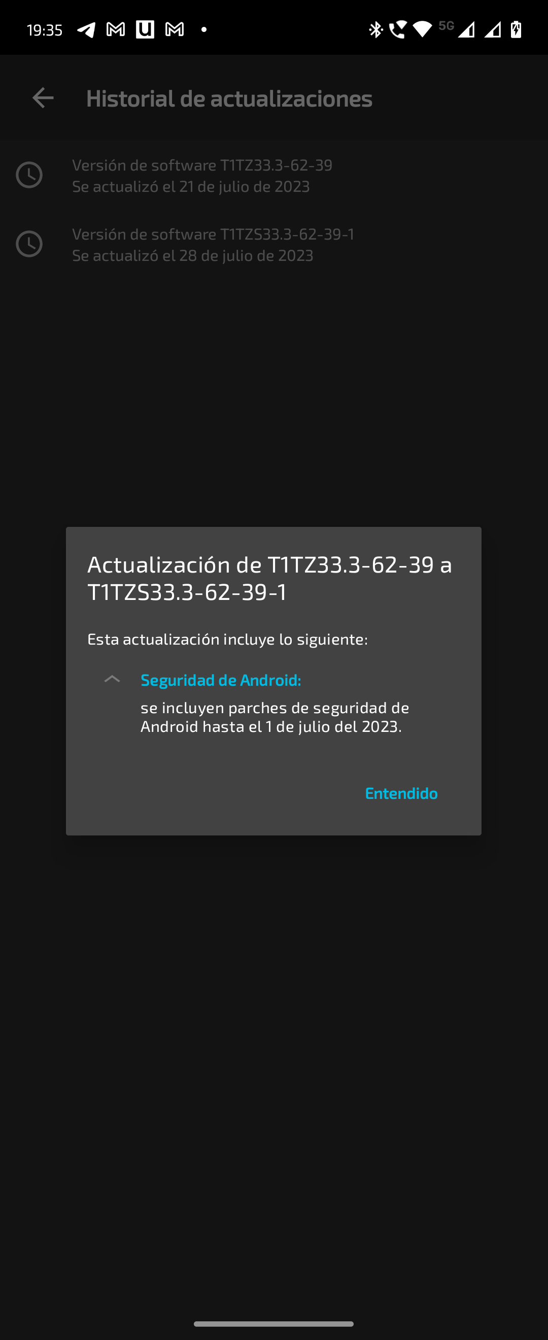 En cuanto a actualizaciones de software, puedo comentar que durante el periodo de prueba recibí dos actualizaciones. La primera la recibí el 21 de julio y traía el parche de seguridad de mayo, y la segunda la recibí el 28 de julio y traía el parche de julio, por lo que el equipo se encuentra completamente actualizado, lo cual se agradece.