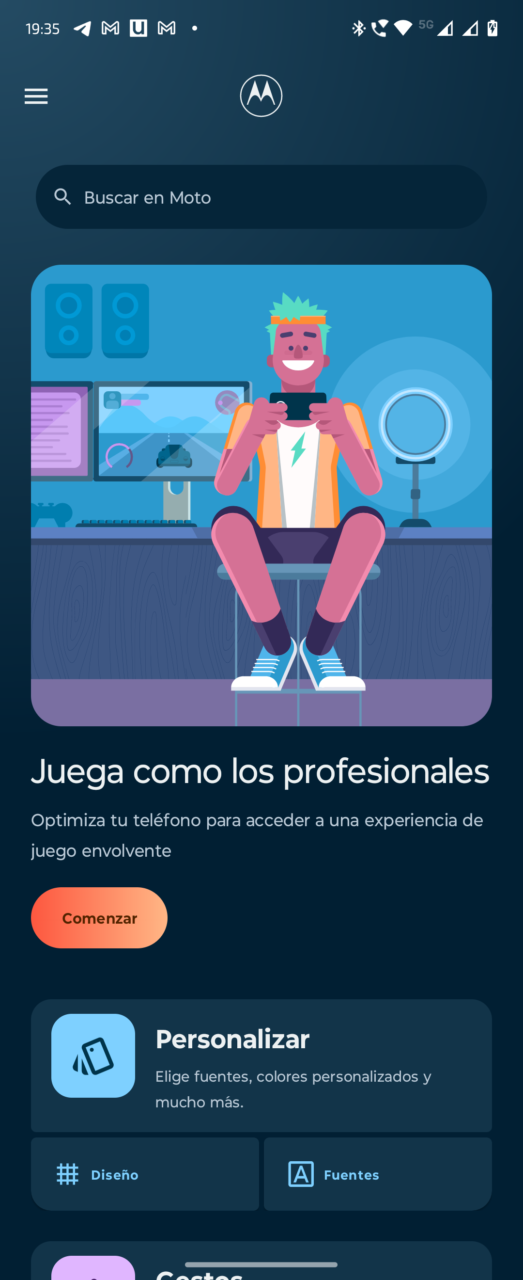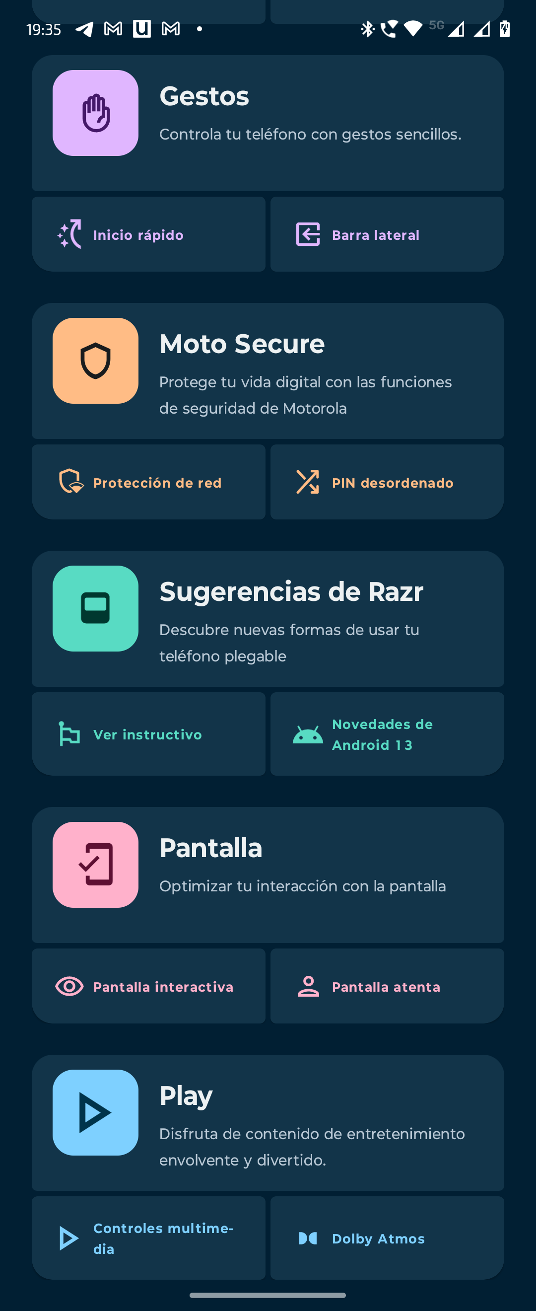 - Moto: esta app nos permitirá aplicar una personalización, como elegir fuentes, colores, etc. También aplicar gestos, activar Moto Secure, conocer sugerencias, entre otras funciones.