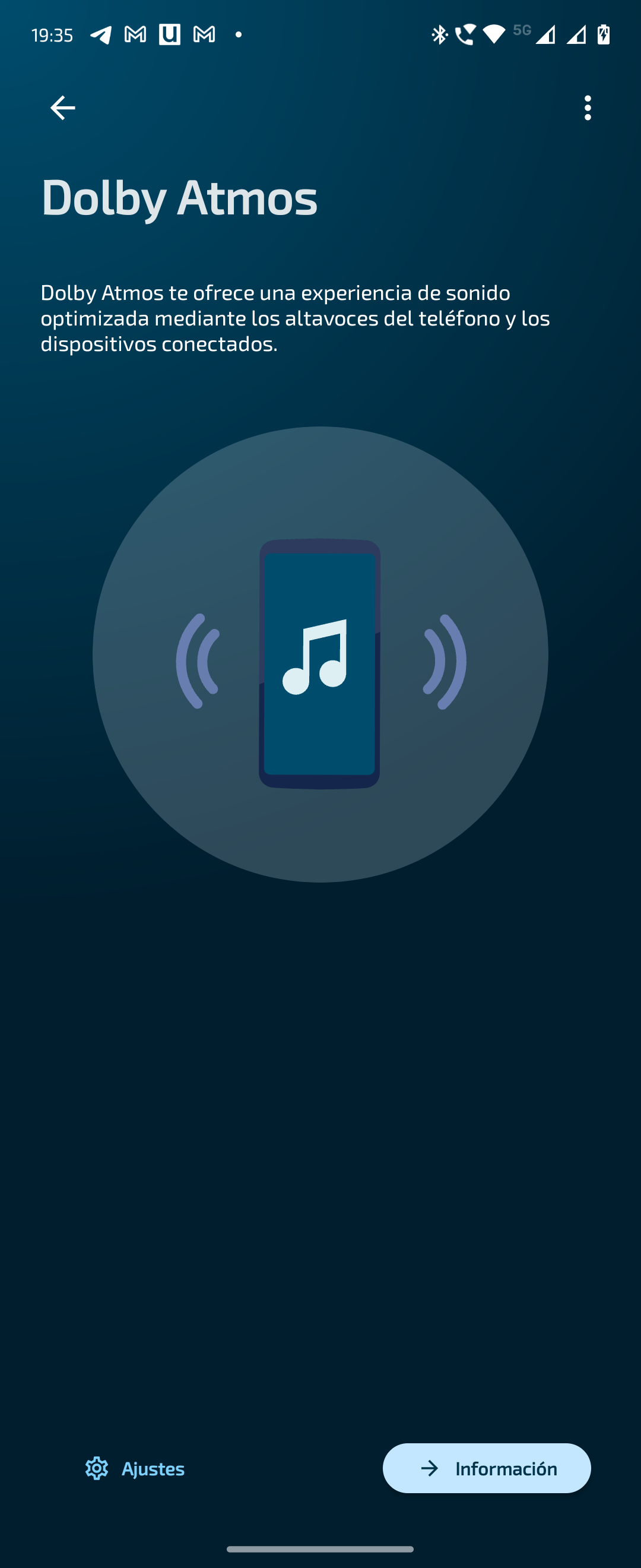 Dolby Atmos también está disponible para cuando usamos audífonos cableados o por Bluetooth. De hecho, cada vez que conectamos dispositivo de audio nuevo, la app de Dolby nos pregunta si queremos aplicar nuevos ajustes.