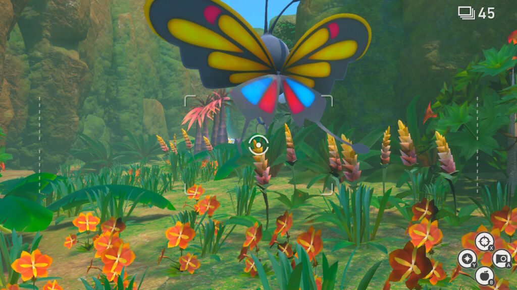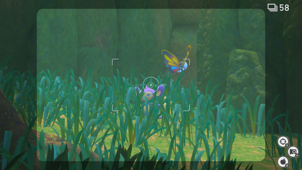 Para acercarnos con nuestra cámara a un Pokémon para tomar una foto solo tenemos que apretar ZL, y hasta tenemos también controles del giroscopio si queremos usarlos y darnos vuelta para capturar fotos de Pokémon que aparezcan por detrás de nosotros.