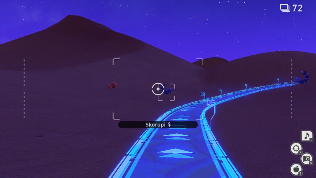 A la vez, también contamos con orbes, los que al lanzarlos iluminarán a los Pokémon para poder sacarles fotos, o también harán algunas acciones especiales, por eso es recomendable lanzarle varios orbes a quienes queramos, pues por ejemplo el Bouffalant se para en dos patas al recibir el impacto de algunos orbes seguidos, y eso lo tenemos que descubrir mientras avanzamos.