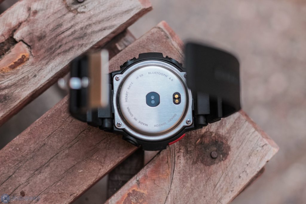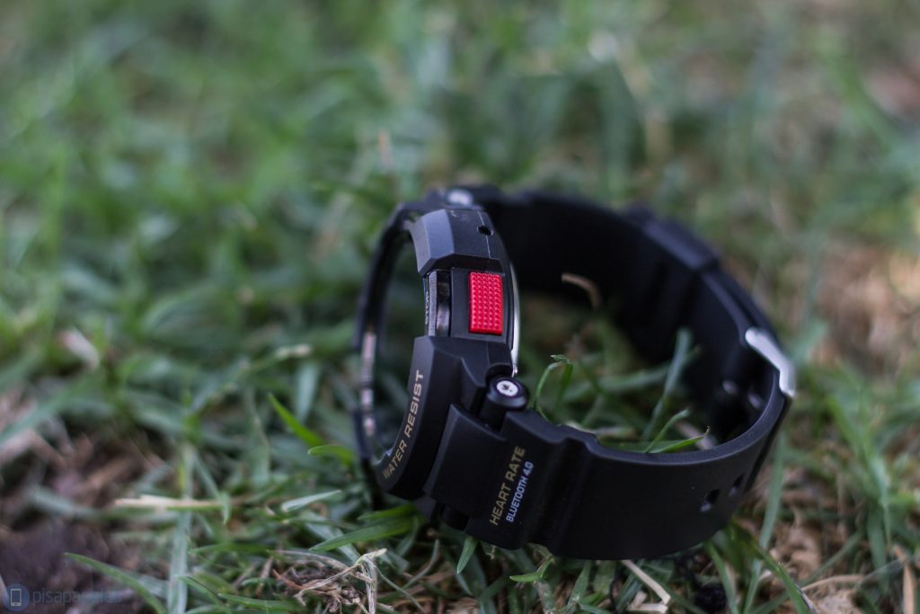 En cuanto a diseño es bastante simple, pues contamos con dos botones por lado, la pantalla en la parte superior, y el sensor de ritmo cardíaco y el puerto de carga en el inferior. Destacar que los dos botones del lado izquierdo sirven para desplazarse entre los menúes, mientras que los dos otros del derecho sirven para prender y apagar el reloj. Además, el dispositivo cuenta con certificación IP68, lo cual significa que es resistente al agua y al polvo.
