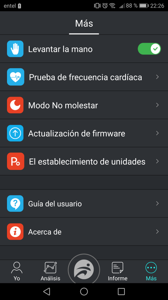 Es importante notar que aquí apenas hay opciones dedicadas únicamente para el reloj, y de hecho no hay ningún tipo de menú para ver el estado de batería del reloj y esas cosas.