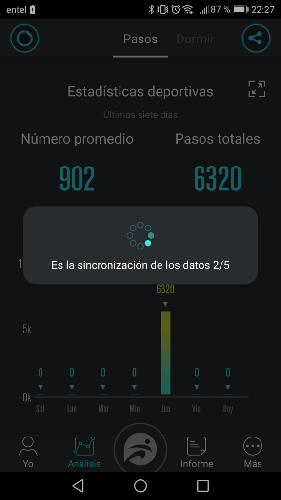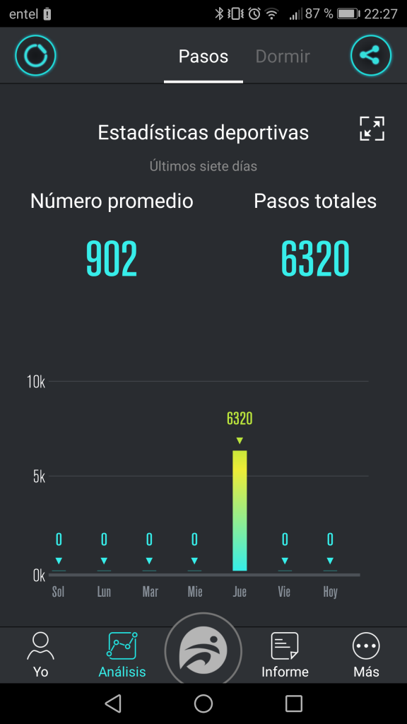 No obstante, se me presentaron algunos problemas e inconsistencias con la aplicación, pues hay veces que simplemente no se sincronizó ningún dato que el reloj capturó. Además, ésta es algo lenta (a veces se queda pegado, o hay una suerte de lag al momento de moverse entre las opciones), y me parece que no está muy bien optimizada para su uso en general, ya que al momento de iniciar de una actividad, la misma aplicación comienza utilizar una grosera cantidad de recursos del teléfono, resultando en que el rendimiento general de éste se vea reducido mientras utilizamos la app.