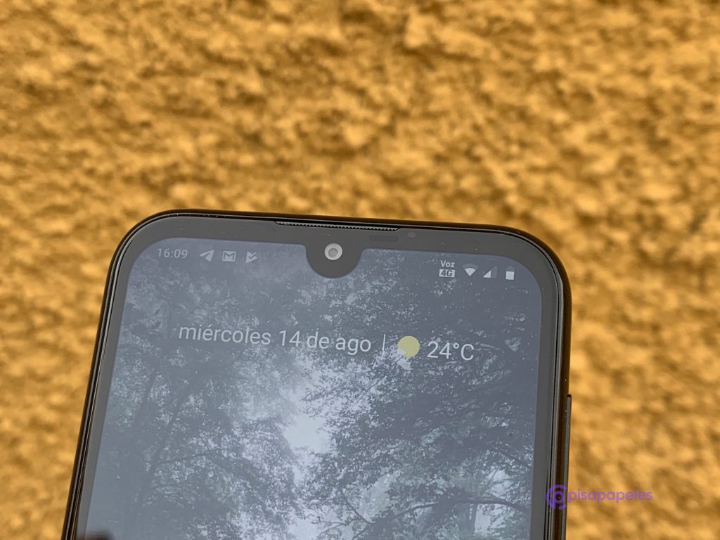 Por el lado frontal tenemos un recorte circular en la parte superior de la pantalla con forma de gota de agua, lugar donde va alojada la cámara frontal de 8 megapixeles con apertura f/2.0 para que puedas tomarte tus selfies.
