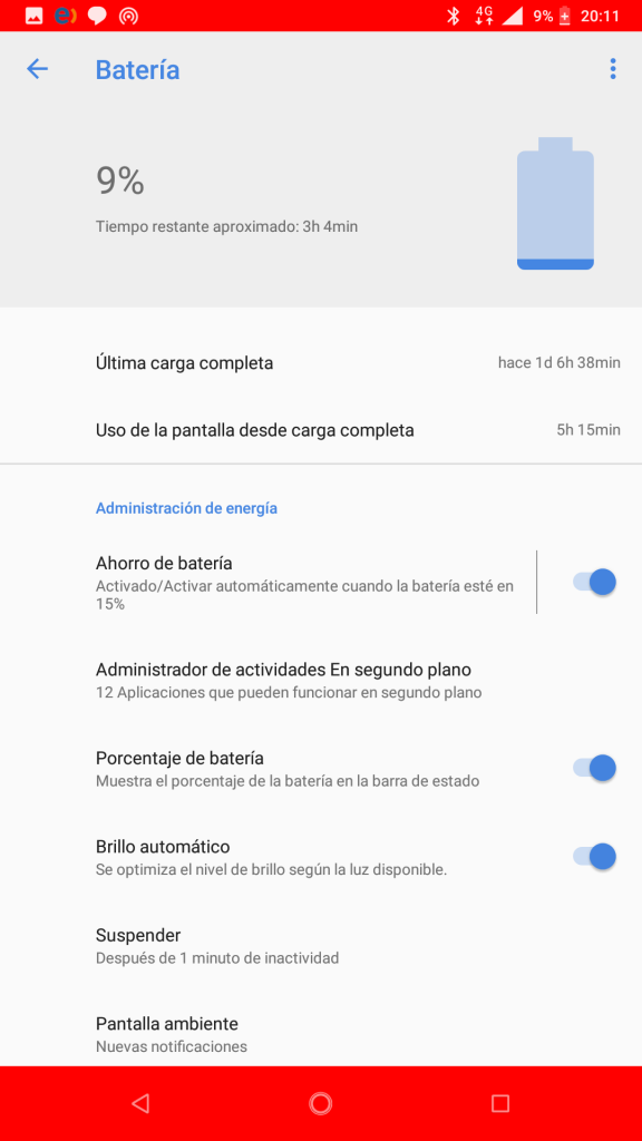 Dato adicional: El sistema activa automáticamente el ahorro de energía al alcanzar el 10% de energía de la batería. Sin embargo, la prueba se realizó sin ningún método de ahorro de energía.
