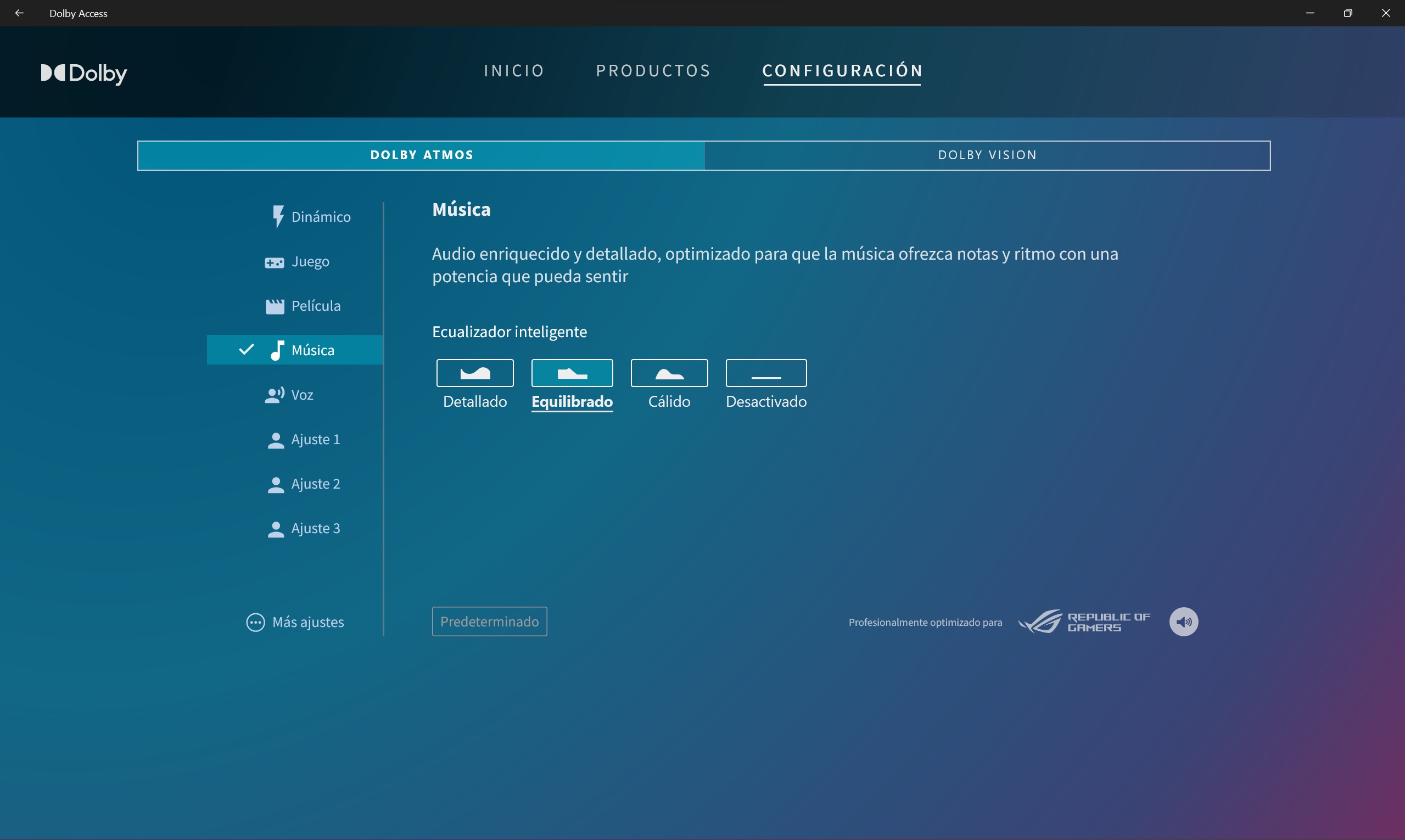 Si hablamos del audio interno, el controlador de audio corre por cuenta del Realtek HD, al igual que existe Dolby Atmos para los audífonos. Este permite entre otras cosas ecualizar el sonido, virtualizar a más canales para una experiencia envolvente según el tipo de audio que usamos como música, películas, juegos, etc. El equipo posee un Jack de 3.5 mm para audífonos, al igual que permite usar los puertos USB-C y USB-A para extraer audio. En este aspecto funciona igual de bien que con los parlantes, con un sonido alto, equilibrado y rico en todas las tonalidades entregando una muy buena calidad.