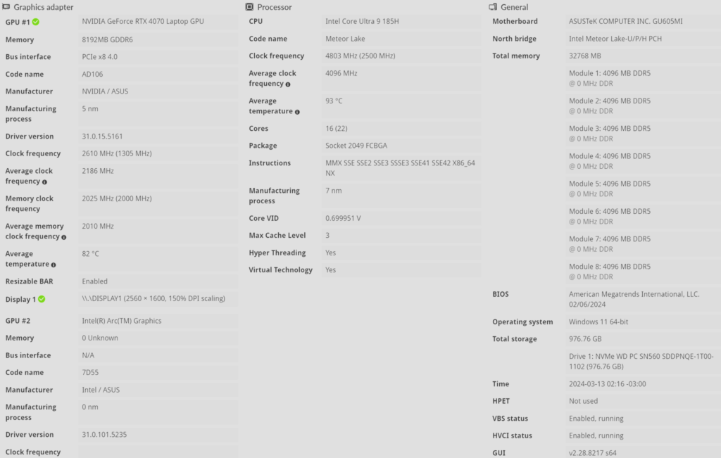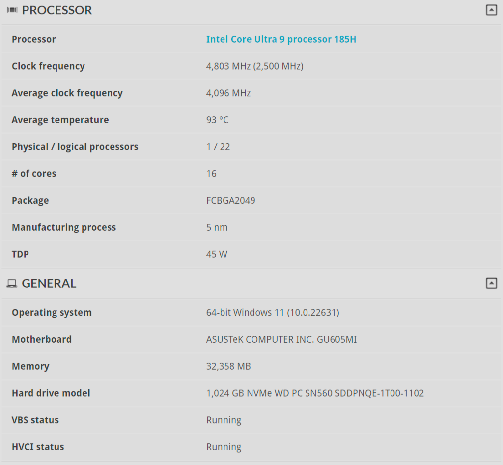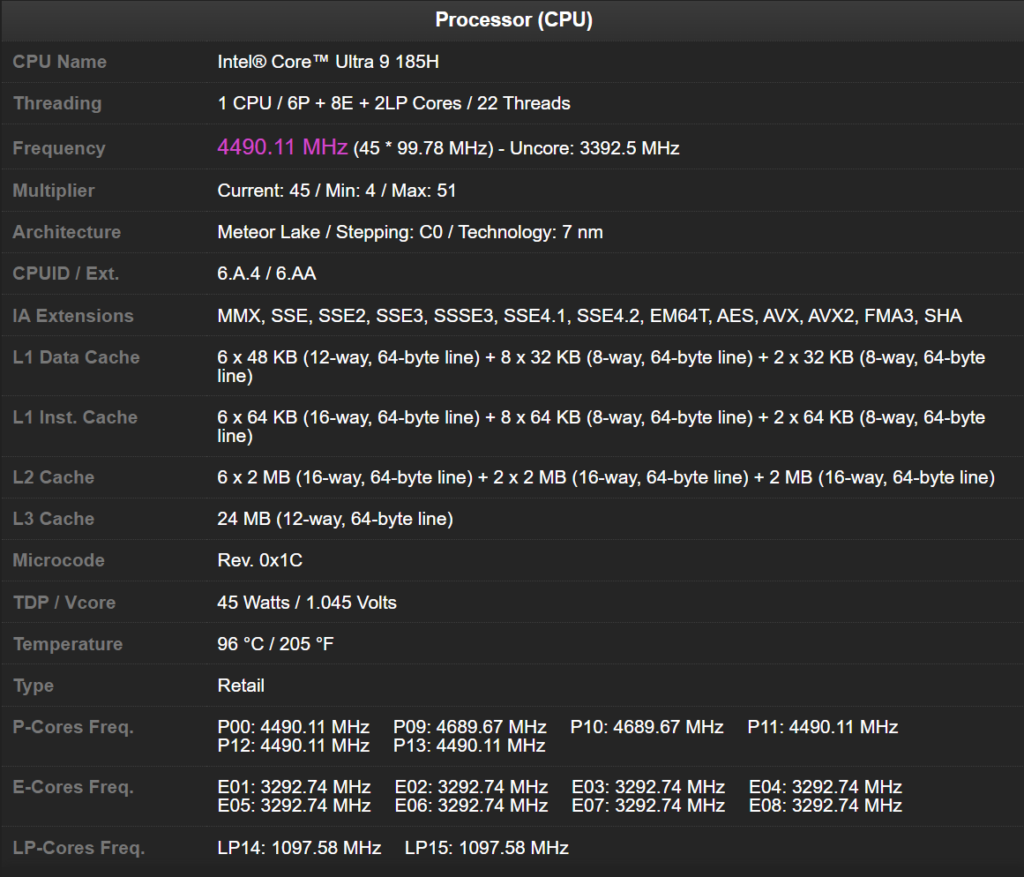 Primero recordemos que este equipo cuenta con un procesador de última generación, se trata del Intel Core Ultra 9 185H, el cual cuenta con aceleración por IA. Además, los núcleos NPU dedicados permiten realizar cargas de trabajo sostenidas con IA y reducir el consumo de energía.
