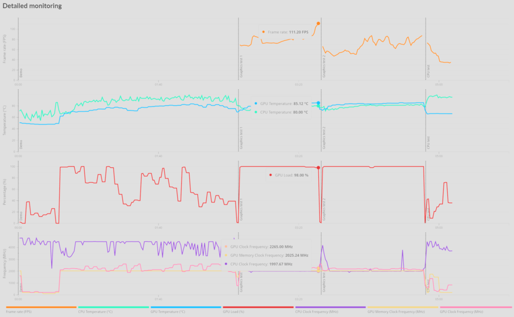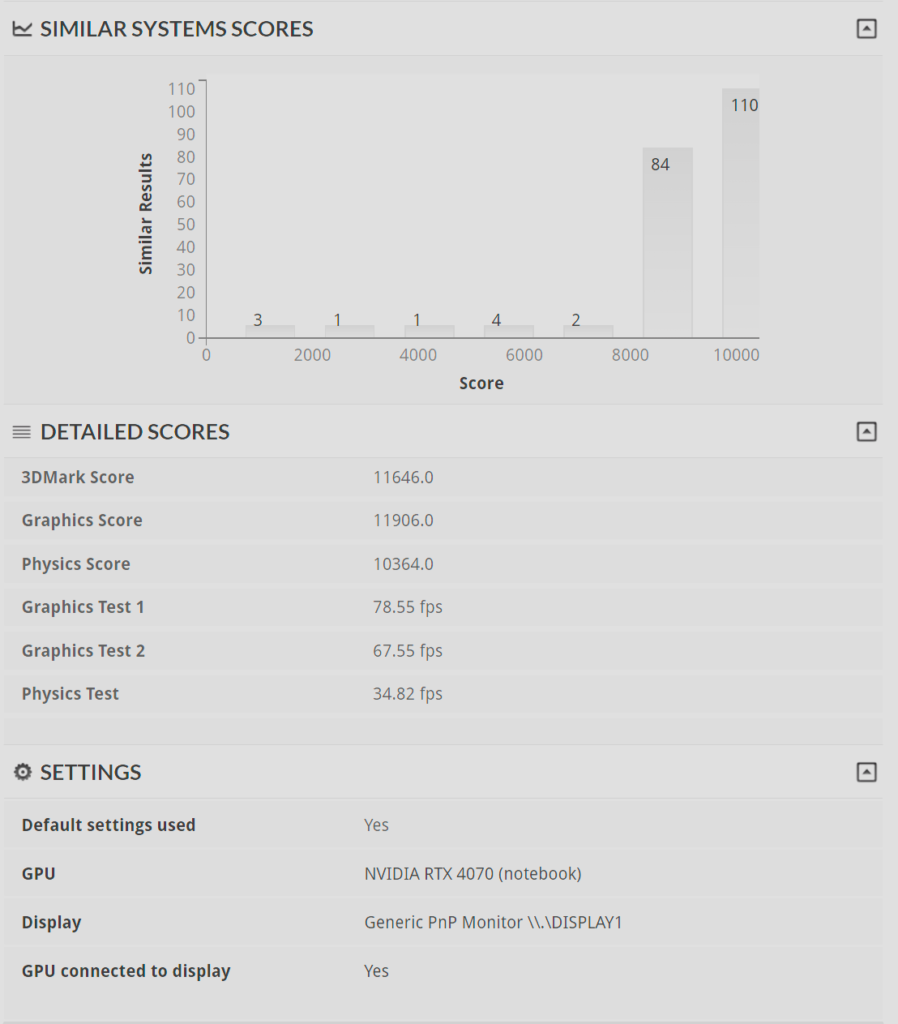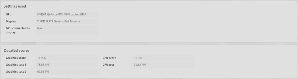Lo que más destacó en este caso, fue la tarjeta gráfica NVIDIA RTX 4070, ya que su puntaje fue obtenido con valores de fps que superaban los 60 e incluso superando los 110 fps en algunos casos.