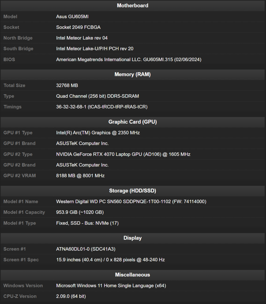Rendimiento del ROG Zephyrus G16 2024