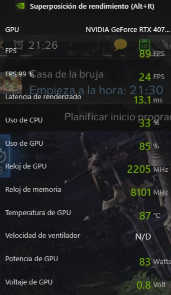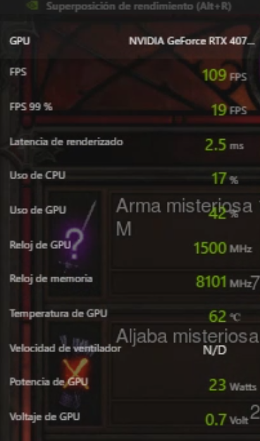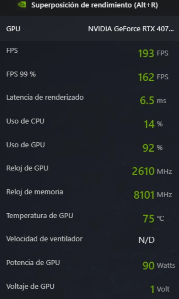 Entre los juegos revisados, se encontraban los siguientes: Fortnite, Lost Ark, Phasmophobia, POE, Diablo III, Diablo IV, Valorant, League of Legends y a continuación se presenta una galería con los rendimientos obtenidos en cada caso (registrados mediante la Superposición de rendimiento de NVIDIA mientras se jugaba), considerando que en todos ellos, la configuración utilizada siempre estuvo en el máximo posible.