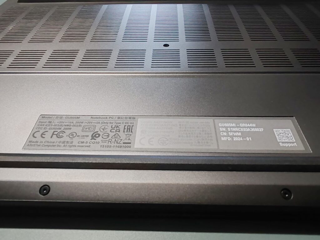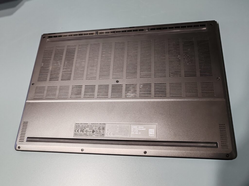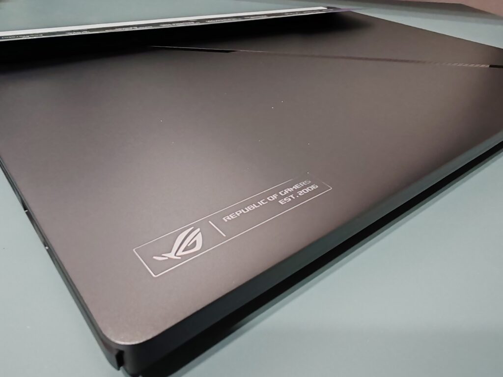Desde el inicio que hemos destacado lo esbelto que es este equipo, que no alcanza a llegar a los 2 cm de espesor (1,49 a 1,74 cm de espesor). Si a lo anterior le agregamos de que el material con el que está compuesto el ROG Zephyrus G16 2024 es principalmente de aluminio, eso le permite tener una rigidez suficiente y menor peso (1,85 kg) que otros equipos para dar mayor portabilidad en caso de ser necesario.