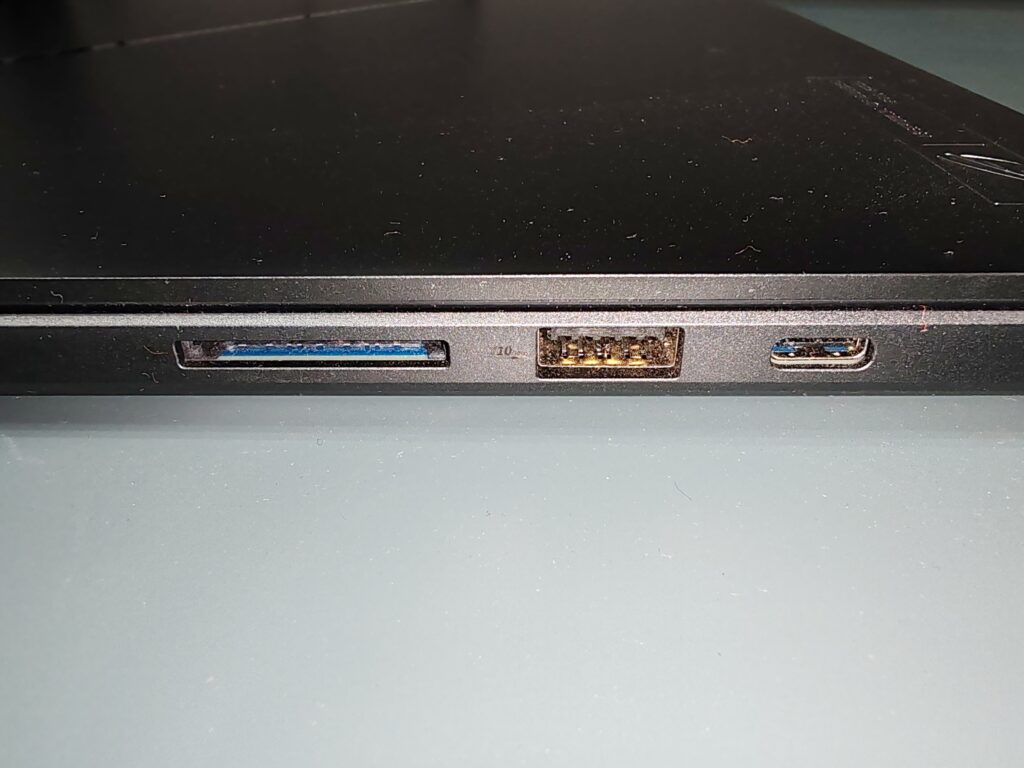 Adicionalmente, cuenta con conectividad Wi-Fi 6E AX211 y Bluetooth 5.2, aunque para mejorar la experiencia gaming en este caso se recomienda que se utilice un adaptador de internet mediante USB-C, ya que se evitó el uso del conector RJ45 para disminuir el espesor del equipo.