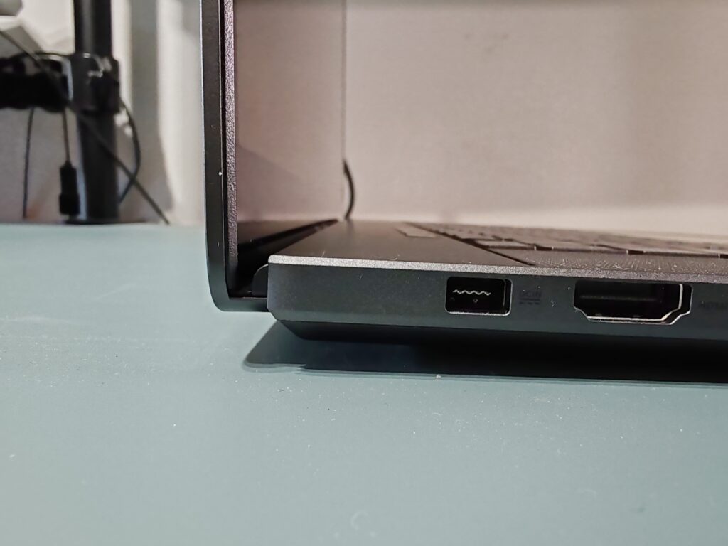 El punto a destacar en este equipo, es que cambió el conector de alimentación a uno propio de ASUS, el cual es más pequeño que generaciones anteriores y permite lograr espesores menores como en este caso.