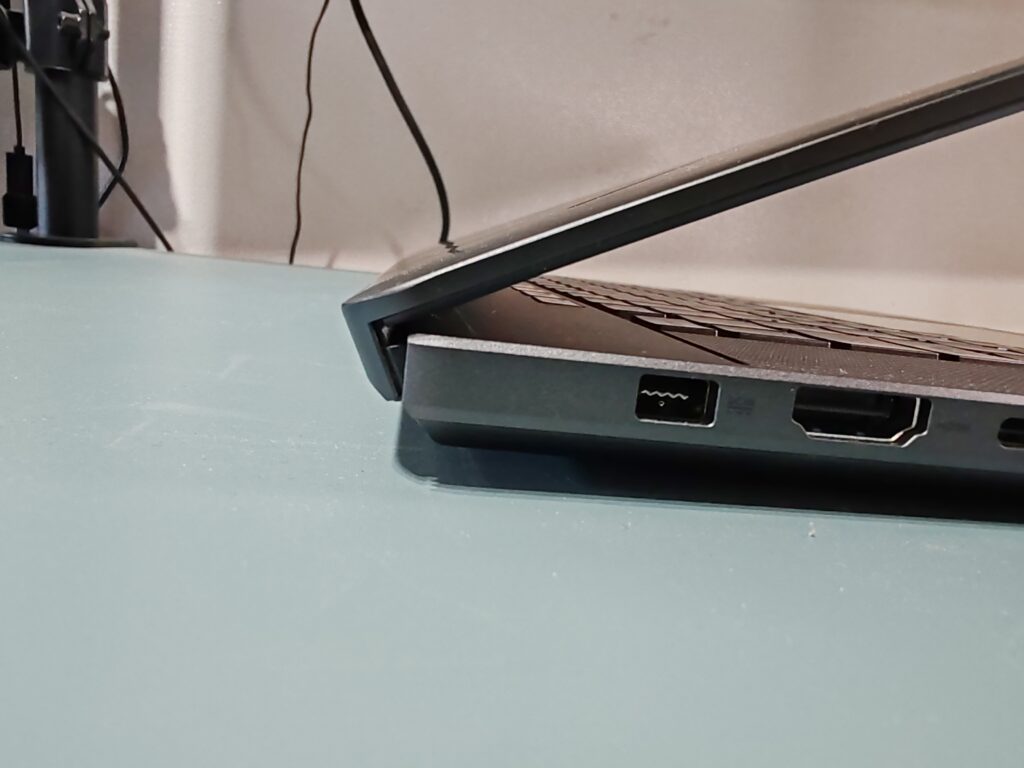 El Zephyrus G16, una de las principales características que tiene, es que es muy delgado. Disminuyendo el grosor del M16 2023 casi en medio centímetro, y aun así logra mejorar su rendimiento. Pesa a penas 1,85 kg y mide entre 1,49 y 1,74 cm de espesor.