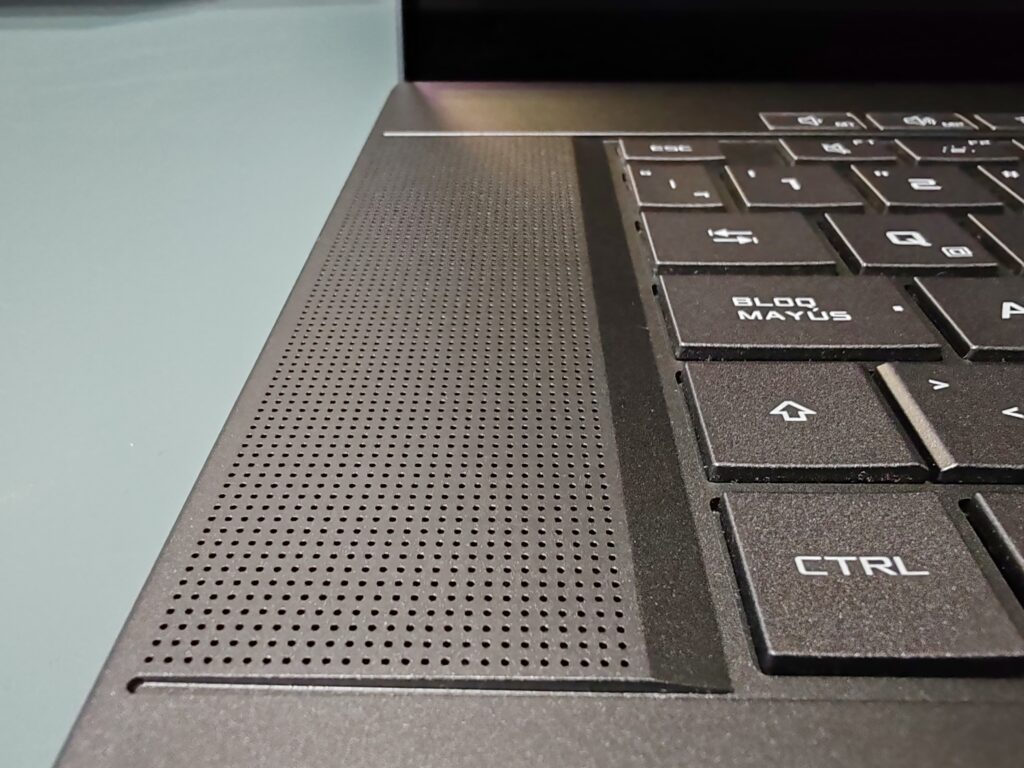 En cuanto al sonido, el ROG Zephyrus G16 2024 está compuesto por 2 Tweeter o altavoces principales que emiten sonidos de alta frecuencia que se encuentran en los costados del teclado y que abarcan una considerable superficie del chasis. Adicionalmente, cuenta con 2x2 Woofer que se encuentran en la parte inferior del equipo que se encargan de la emisión de sonido de baja frecuencia.