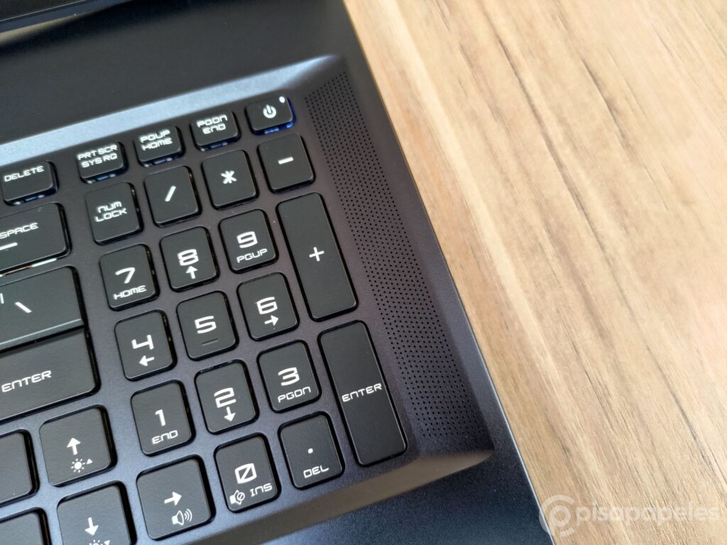 La distribución del teclado es muy adecuada, acá tenemos espacio de sobra para no presionar teclas aledañas al escribir. Cuando estamos escribiendo la digitación es cómoda, y al jugar la respuesta es muy rápida con un nivel de ruido bajo. Como este es un portátil de 17 pulgadas, contamos con teclado numérico, aunque no siempre es así.