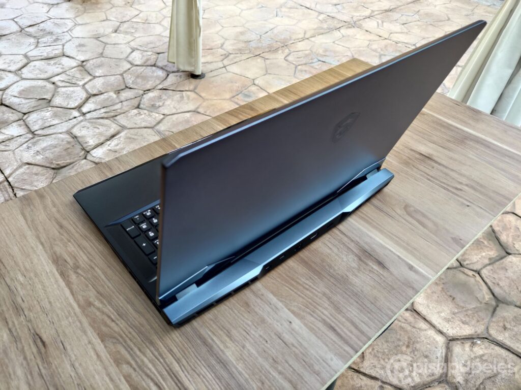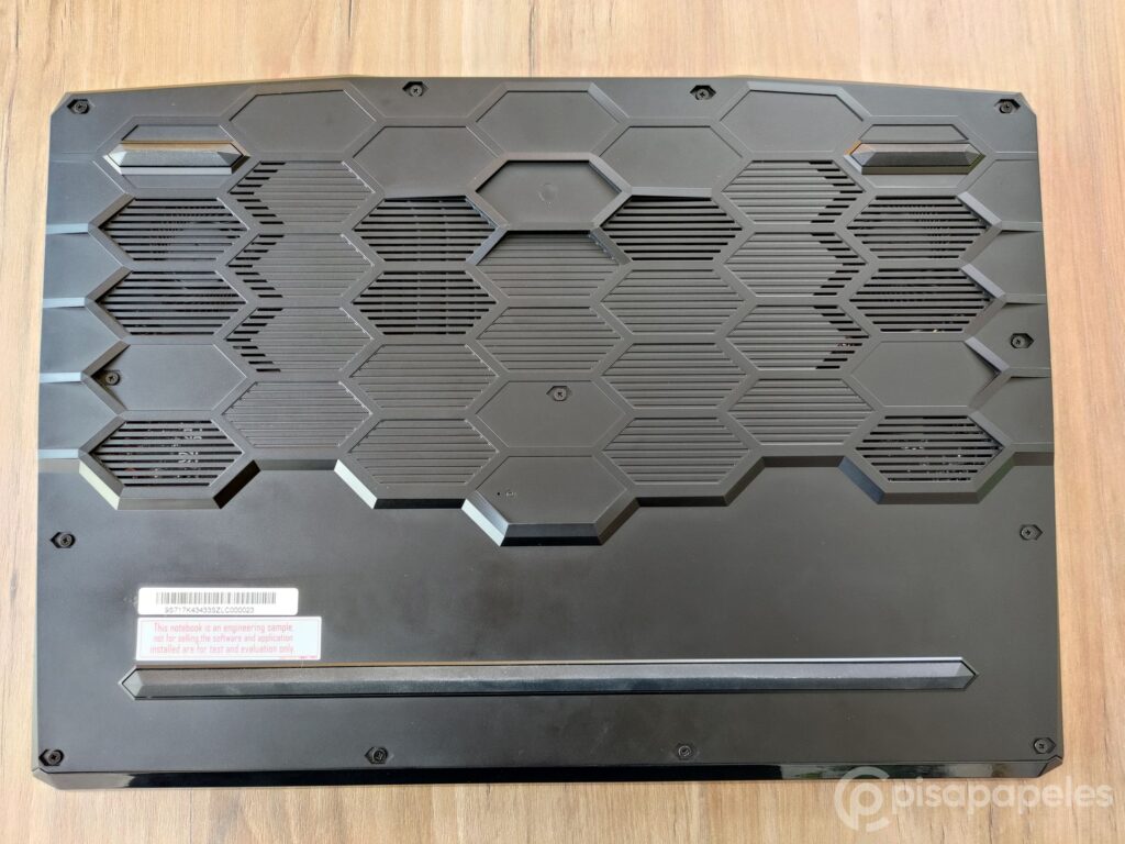En esta oportunidad el portátil tiene un diseño moderno, propio de los equipos gamer con algunas líneas que salen de lo tradicional. Esto queda en evidencia con la parte trasera donde su ubican las bisagras, las salidas de aire, o los cortes en las esquinas superiores de la pantalla. Del mismo modo, una de las cosas que llama nuestra atención es la franja de iluminación LED, la que suma otro toque gamer al portátil. Por lo que en lo que respecta al diseño, el equipo tiene un aspecto muy agradable visualmente.