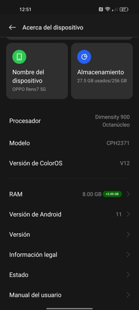 El Oppo Reno 7 5G viene con ColorOS 12 y Android 11, algo que no nos gusta mucho ya que Android 12 lleva bastante tiempo en el mercado, y Android 13 ya está por llegar en el mes de agosto, así que ya deberíamos estar en Android 12.