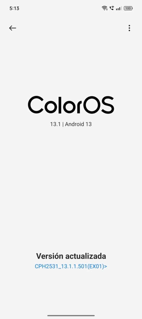El Oppo Reno10 5G opera bajo Android 13, contando con la última actualización de seguridad al 5 de septiembre y la intuitiva capa de personalización del fabricante, ColorOS 13.1.