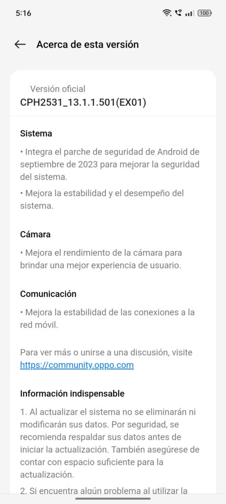 En general, ColorOS en el Oppo Reno10 5G ofrece una experiencia de usuario amigable y personalizable, con varios puntos fuertes y algunas áreas para posibles mejoras en cuanto a la multitarea y la personalización visual.