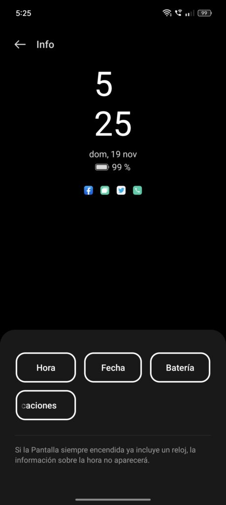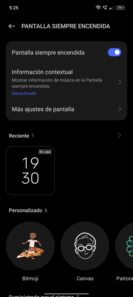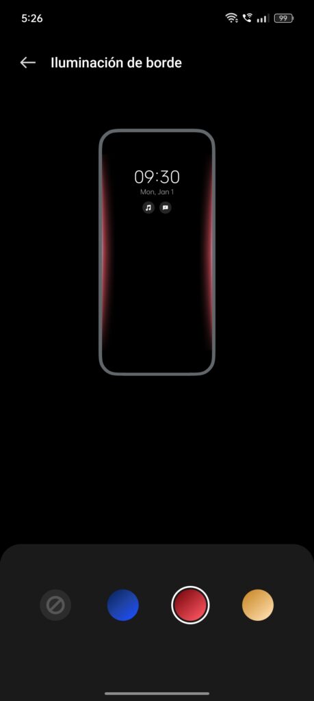 Entre las características a destacar de ColorOS, se incluye la opción de pantalla siempre encendida, que si bien personalmente no utilizo, es un detalle que algunos usuarios pueden encontrar útil. La iluminación de bordes en la recepción de notificaciones es otro punto interesante; en este contexto, la pantalla curva adquiere un sentido práctico al hacer que las notificaciones sean visualmente más atractivas. Creo que recién es en este apartado donde la pantalla curva toma cierta relevancia y utilidad.