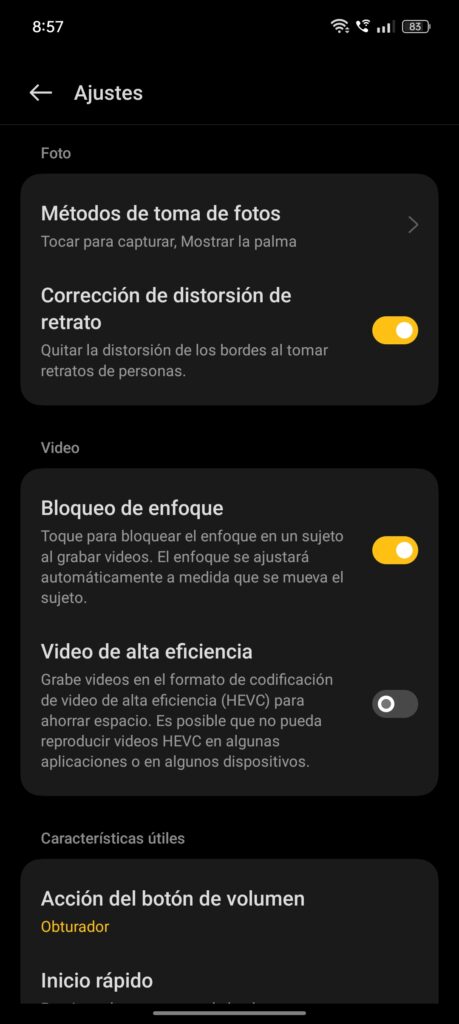 Un detalle para tener en cuenta es la ausencia de rotación a la cámara frontal durante la grabación. En la grabación, encontramos un modo belleza, aunque menos versátil que en fotografía, con un solo deslizador en lugar de múltiples parámetros ajustables. No hay un modo profesional para la grabación de video.