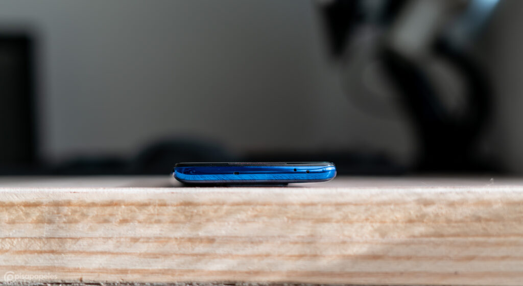 En la parte de abajo del teléfono nos encontramos con la entrada USB-C, el jack de 3.5 milímetros para audífonos, un parlante, y el micrófono. Por último, por arriba nos encontramos con el micrófono secundario y un sensor infrarrojo para utilizarlo como un control remoto.