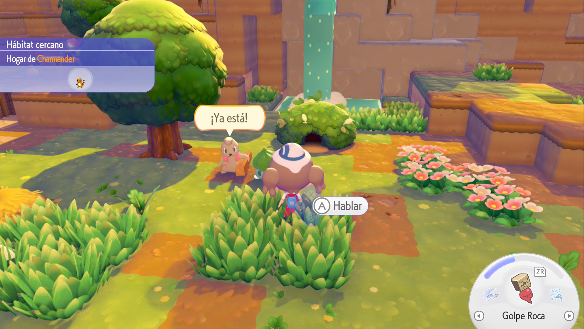 La Habitat Dex organiza estas posibilidades y convierte la colección en un ejercicio constante de experimentación. Mientras, Ditto aprende algunas habilidades de sus nuevos amigos Pokémon: puede rociar agua para convertir tierra árida en pasto, romper rocas, nadar o alterar el terreno en áreas cada vez más amplias. Lo notable es que estas habilidades son golpes de combate clásicos de la franquicia, resignificados como herramientas de cuidado y construcción.