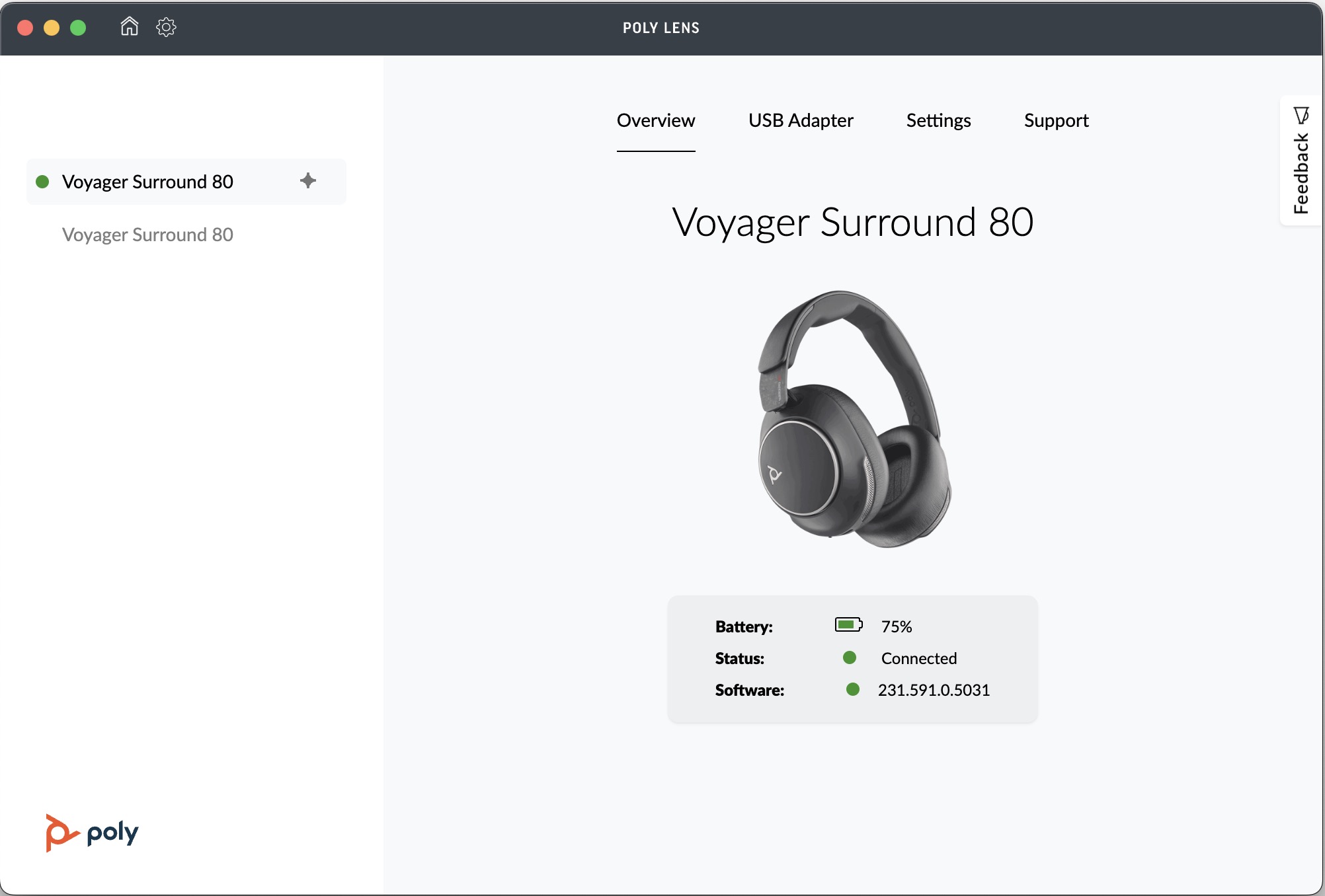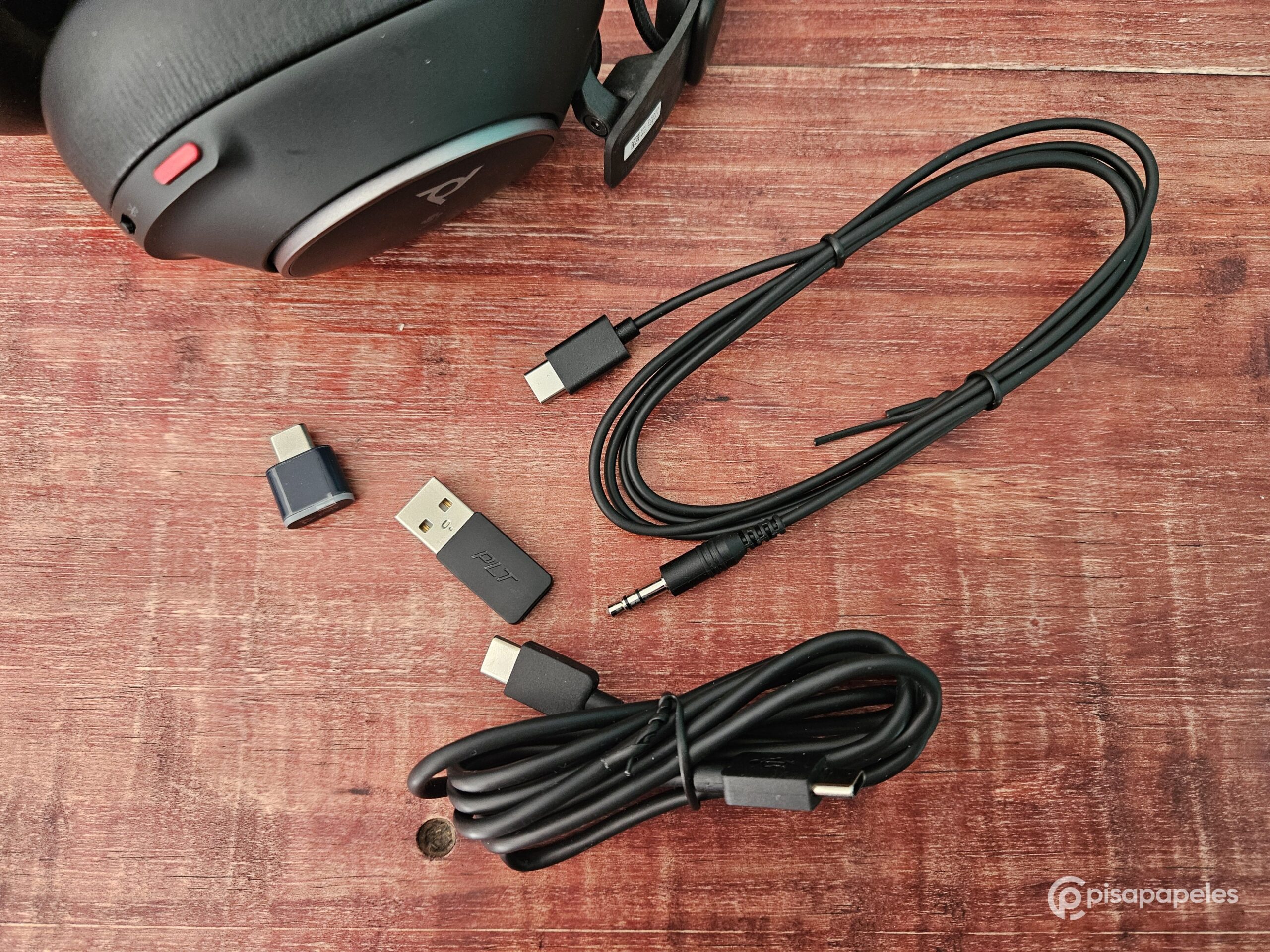 La app Poly Lens es multiplataforma y nos ofrece una gran cantidad de opciones para modificar en los audífonos, además de ofrecernos actualizaciones de software. Me llamó la atención que viniese con su propio adaptador Bluetooth, el cual recomiendo utilizar porque tendrás una mejor calidad de sonido, no tendrás retrasos en el audio y la estabilidad de la señal inalámbrica será mucho mejor que utilizar el propio Bluetooth de tu computador.