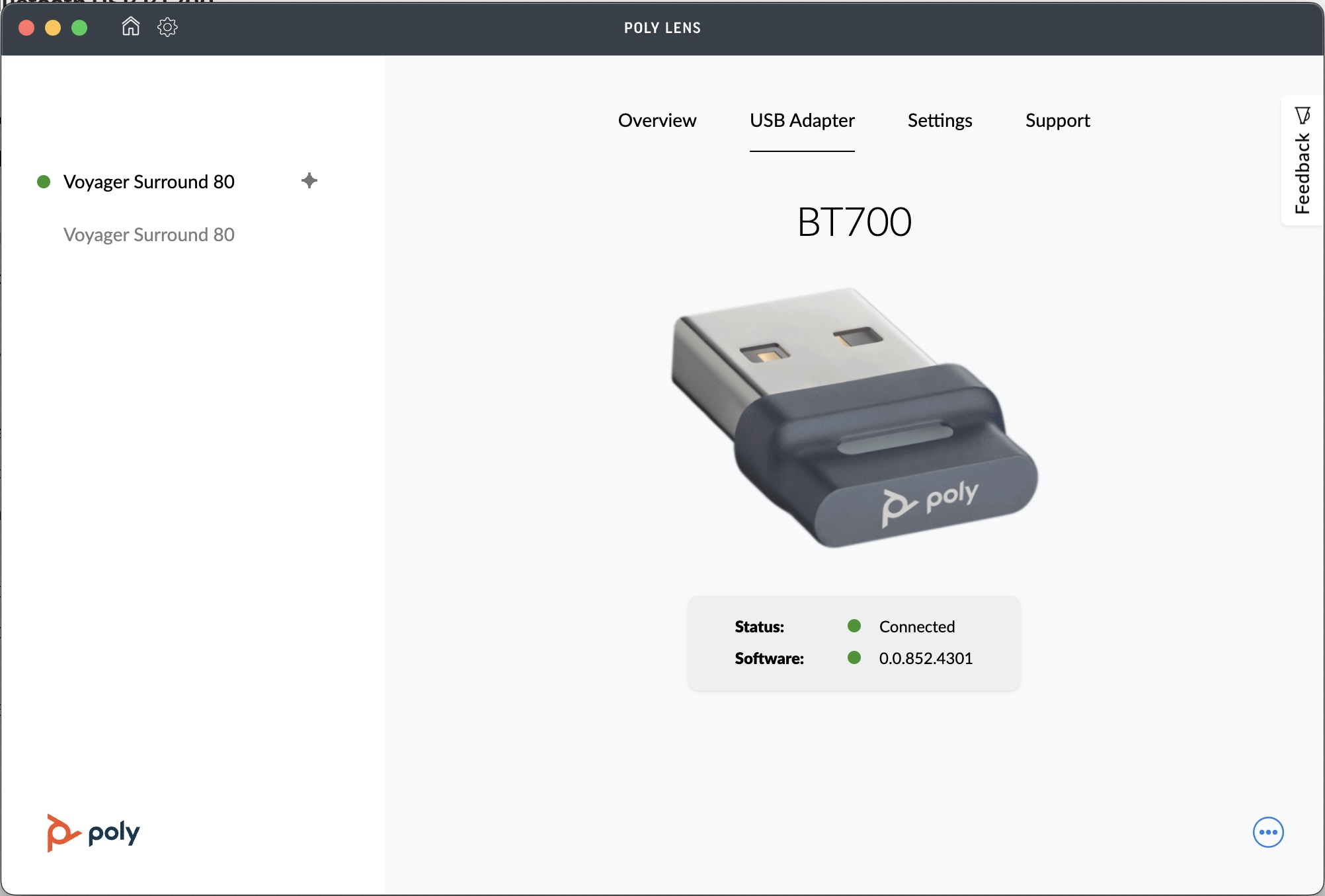 Algo que me llamó la atención cuando recibí estos audífonos fue que incluía su propio Bluetooth USB que se identifica como BT700 y que en esta ocasión solo es reconocido a través de la app Poly Lens para Windows o Mac.