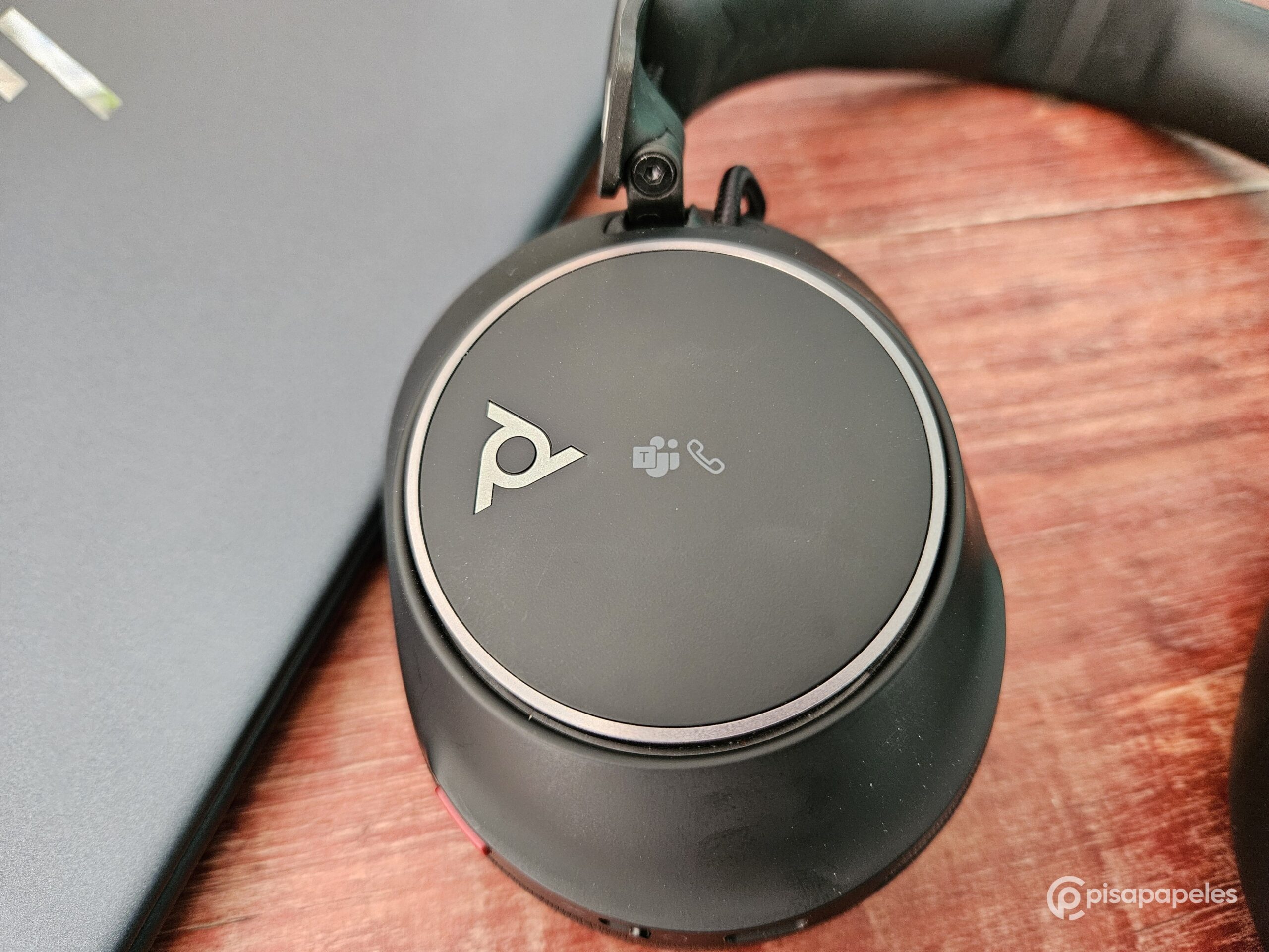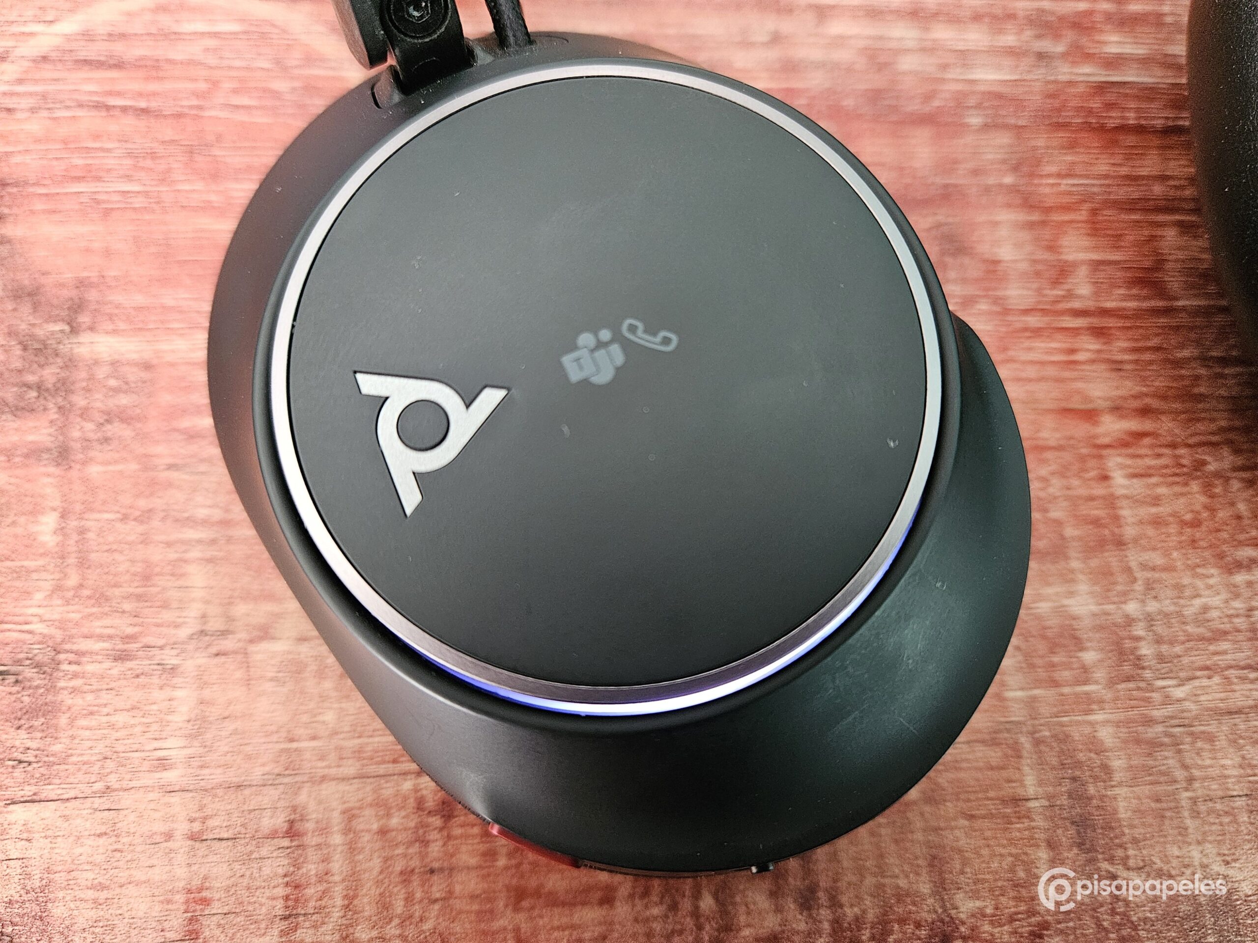 Los audífono derecho cuenta con un botón rojo que nos permitirá acceder a variadas funciones de acuerdo a lo establecido en la app Poly Lens.