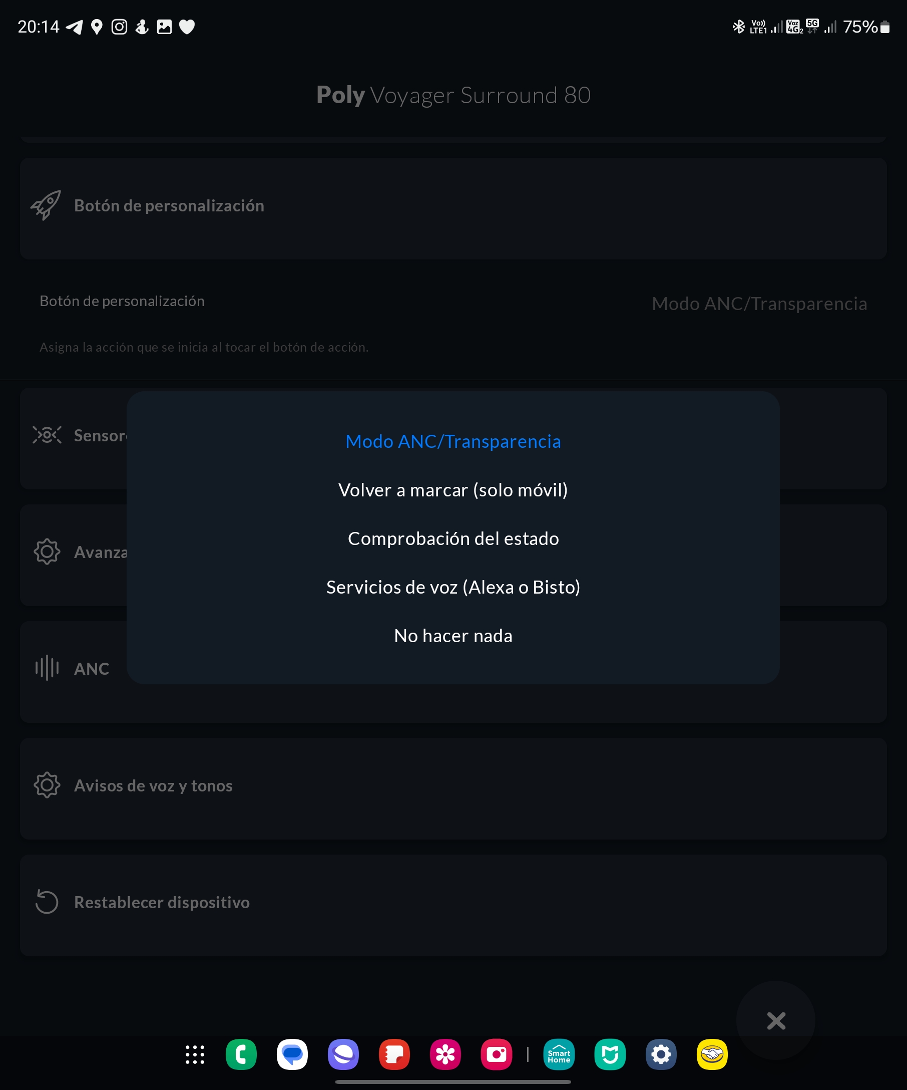 Por ejemplo, podemos elegir que al presionar dicho botón se active o desactive la cancelación de ruido, que nos diga el estado de los audífonos, activar el asistente de voz (Alexa o Bisto), o simplemente elegir que no haga nada.
