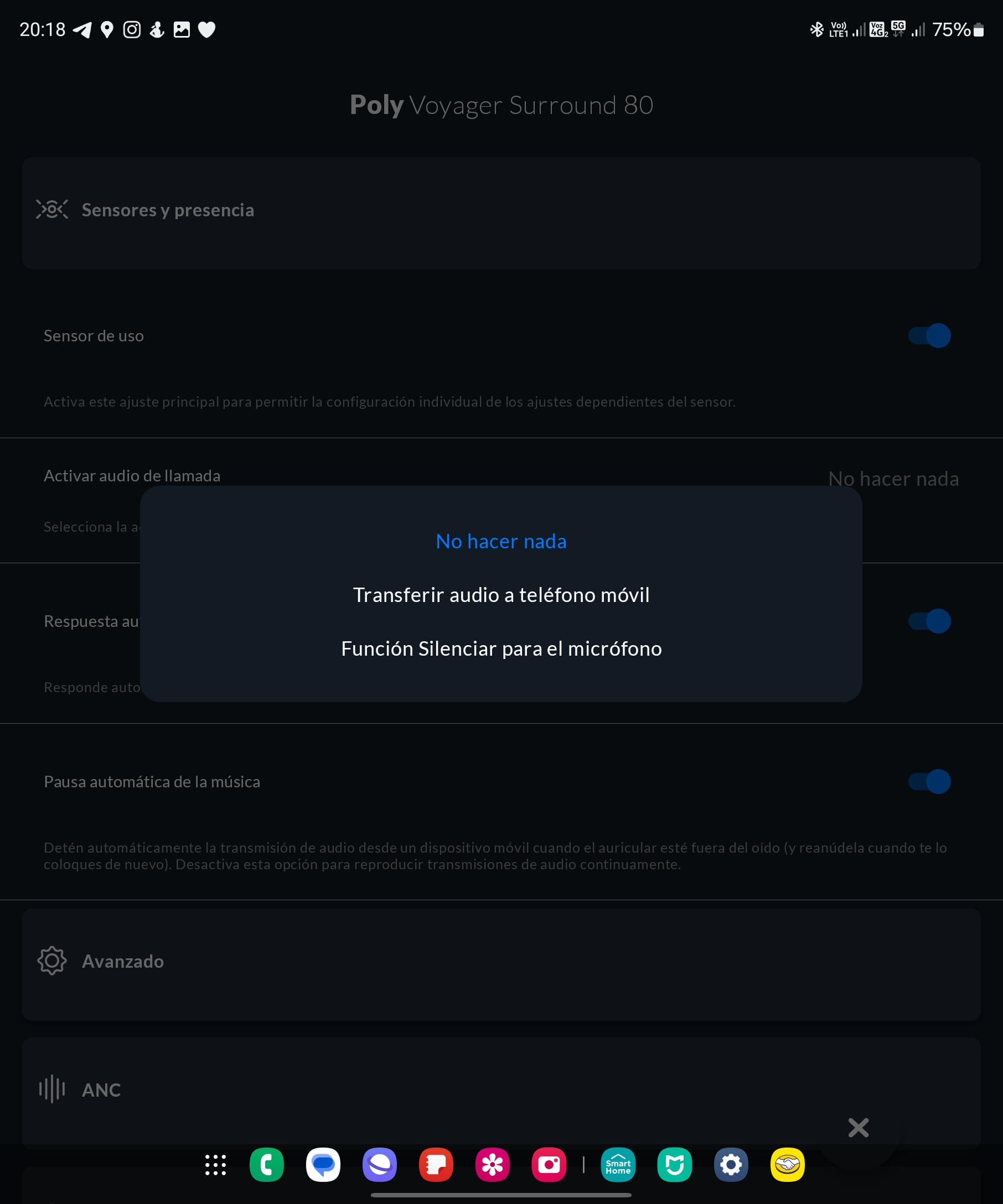 Por ejemplo, cuando estás en una llamada, puedes elegir que, al momento de sacarte los audífonos, automáticamente se silencie el micrófono o transfiera el audio al teléfono móvil.