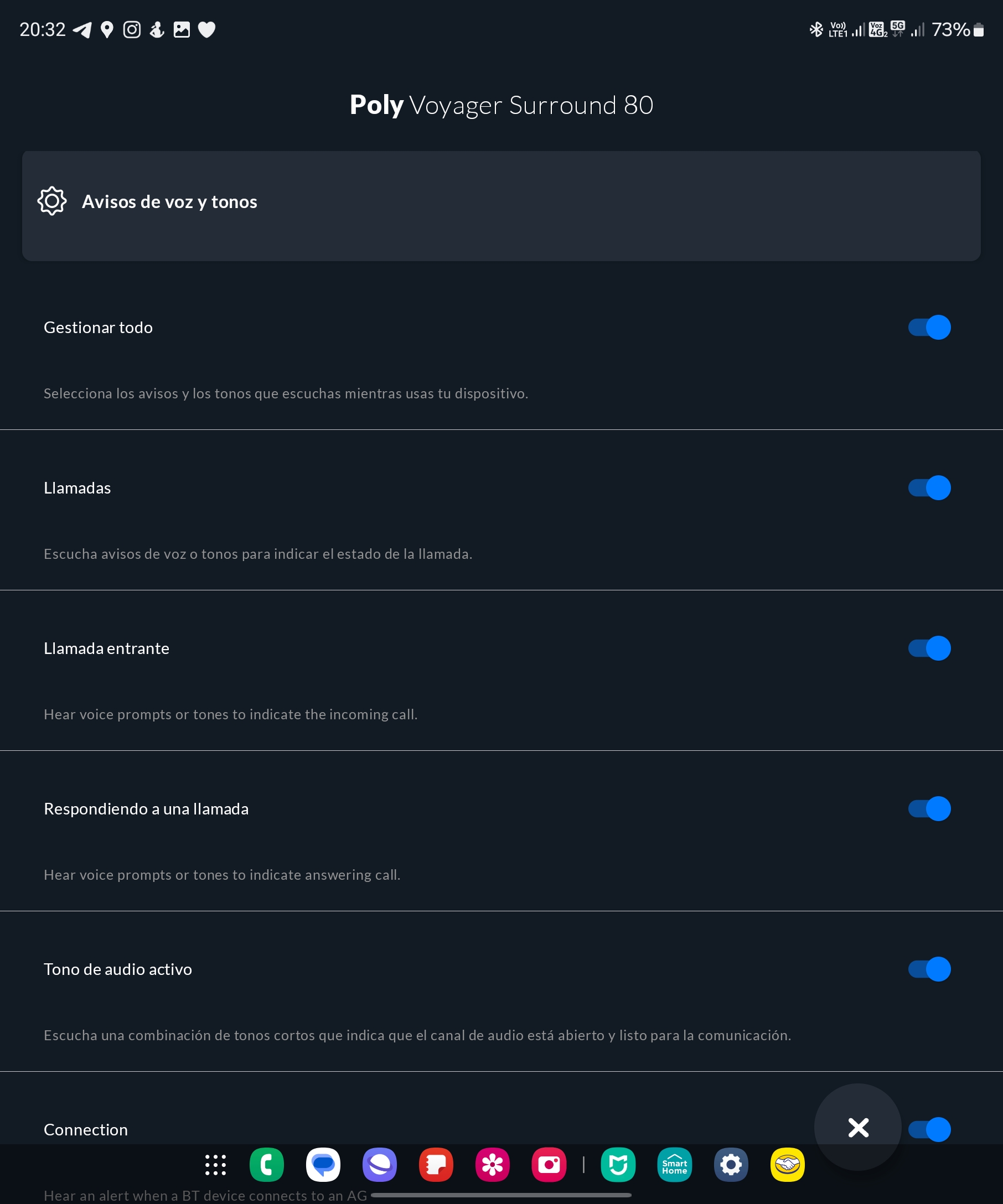 En este apartado vamos a poder activar o desactivar todos los tonos de notificaciones, como cuando entra una llamada, al responder una, el tono de conexión con un dispositivo, entre otros avisos.