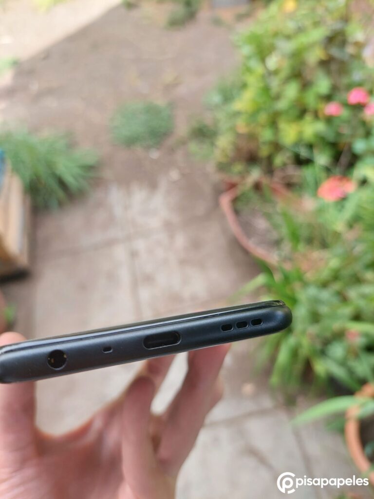 Finalmente, en la parte inferior tenemos un puerto USB-C, el altavoz del dispositivo, del que hablaremos más tarde, y también un jack de auriculares, pues después de todo, estamos ante un gama media, donde no ha muerto este tipo de puerto.