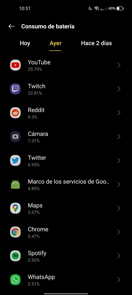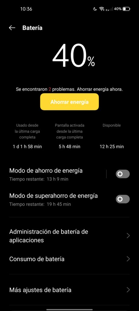 Y es que realmente cuesta encontrar un terminal que nos entregue la duración de batería que nos ha dado este Realme 9i, pues si somos usuarios que no son tan exigentes, puedo decir que llegamos a los dos días de duración de la misma holgadamente.