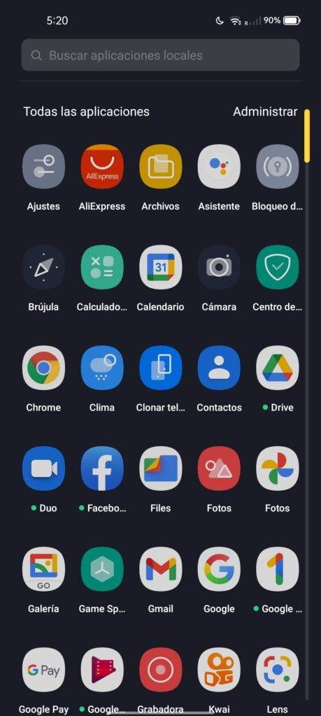 También, en el launcher por defecto tenemos un scroll vertical de apps muy parecido a lo que es Android Stock, y las aplicaciones de teléfono y mensajes son las propias de Google, otro punto a favor de este Realme 9i.