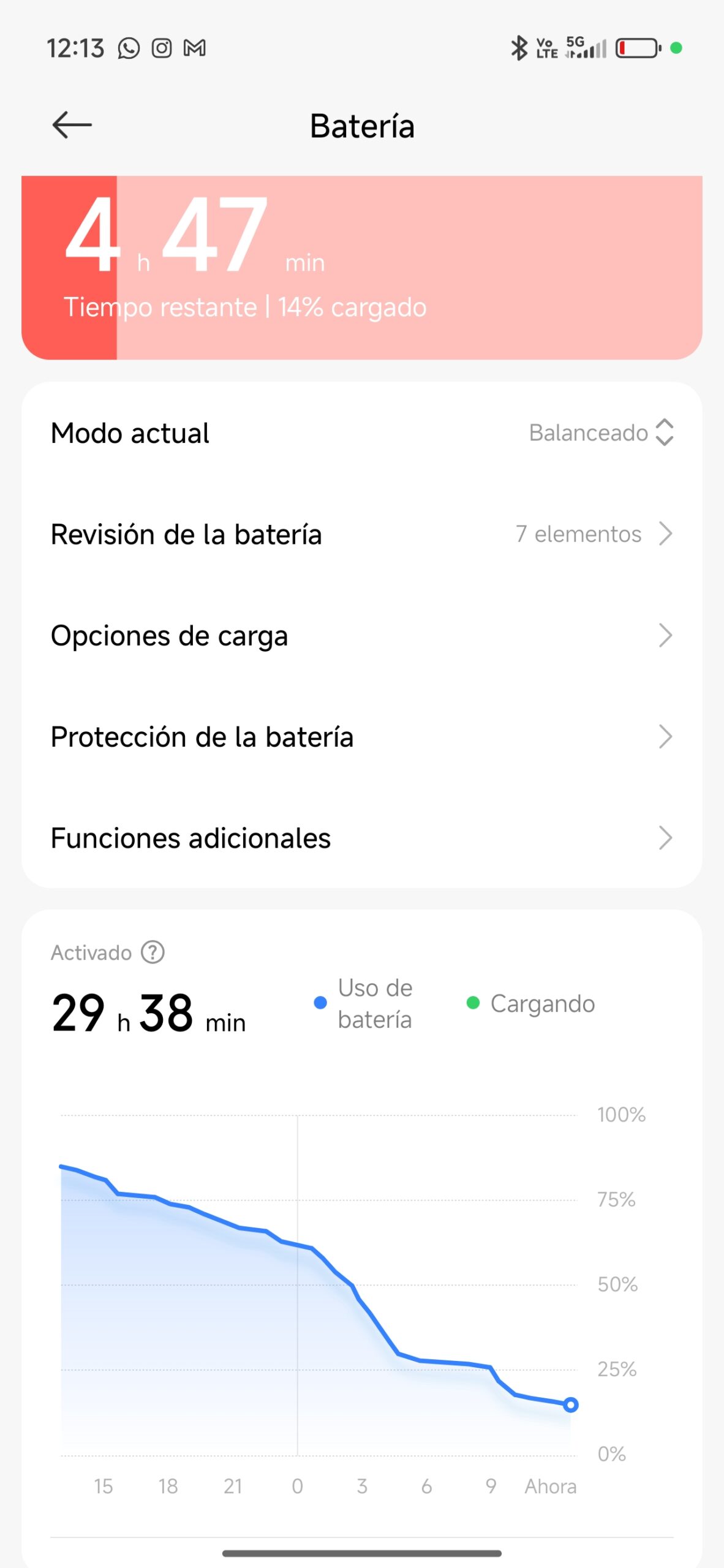 Con el uso que le di personalmente, el cual consiste en usar el equipo como si fuese mío, con mis propias apps, juegos, brillo de pantalla en automático y con conexión Wi-Fi y 5G. Con dicho uso, logré una autonomía de 29 horas con 38 minutos en el momento que me quedaba 14% de batería, por lo que pude haber alcanzado un par de horas más, pero ya debía cargar el equipo.