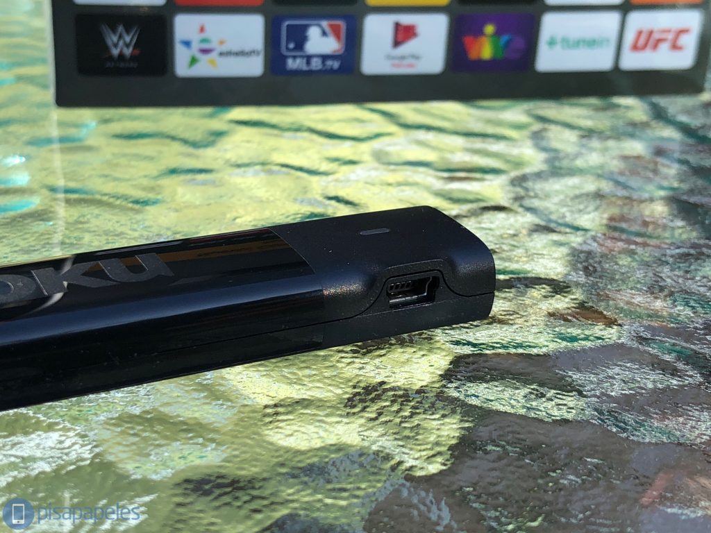 El Roku tiene una entrada Mini USB para poder recibir energía — al igual que el Chromecast — y también trae su respectivo conector HDMI para conectarlo a nuestro televisor. En la caja del Roku viene un cable de USB a Mini USB que nos permitirá usar los puertos USB de nuestro televisor para alimentar al Roku. Dicho cable también actúa como una antena que mejorará considerablemente la conexión Wi-Fi.