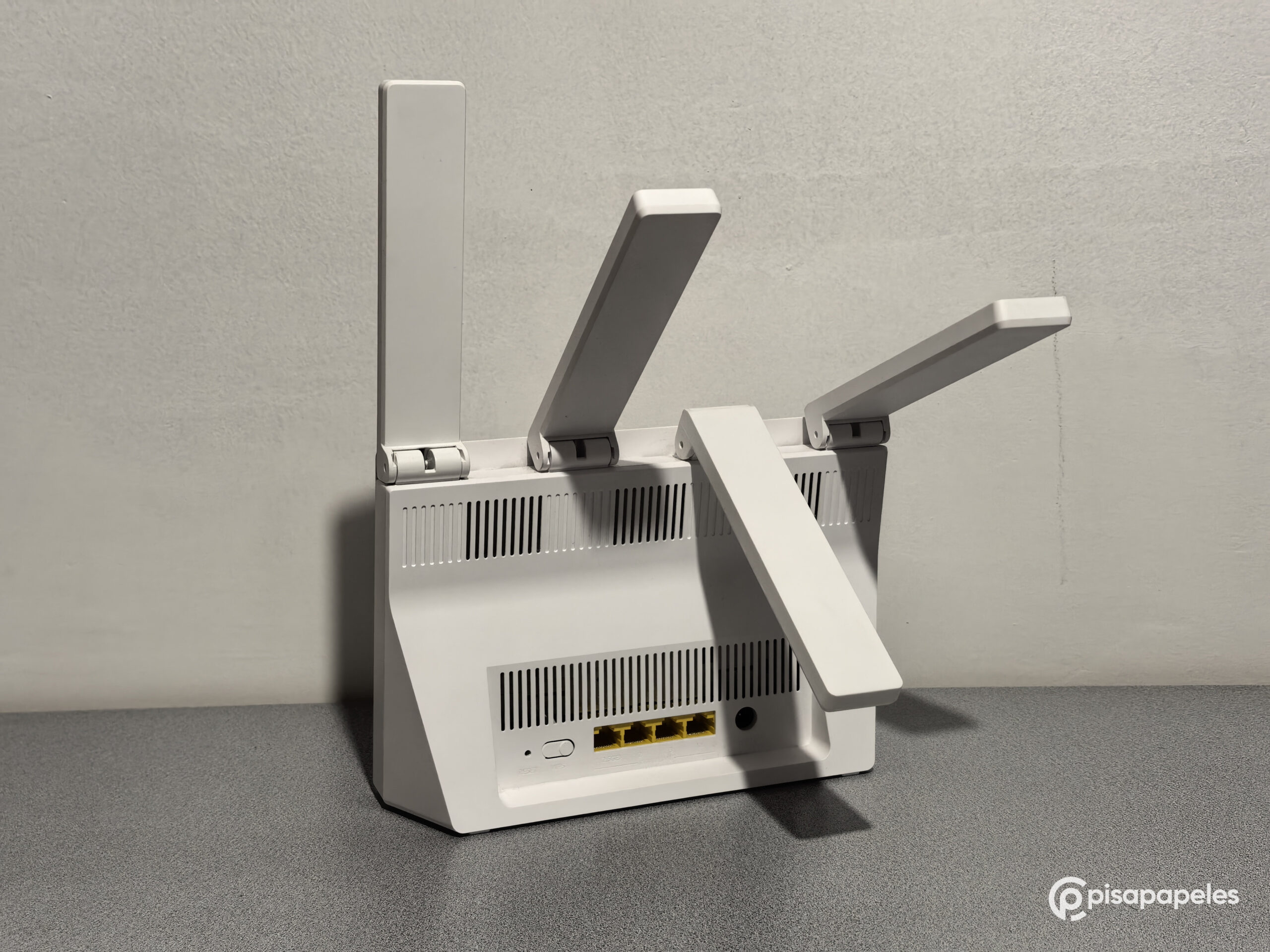 El router es compacto y ligero, con un peso de 436 gramos y dimensiones reducidas incluso con las antenas extendidas. Incluye cuatro antenas plegables, aunque su posición no afecta de forma relevante al rendimiento.