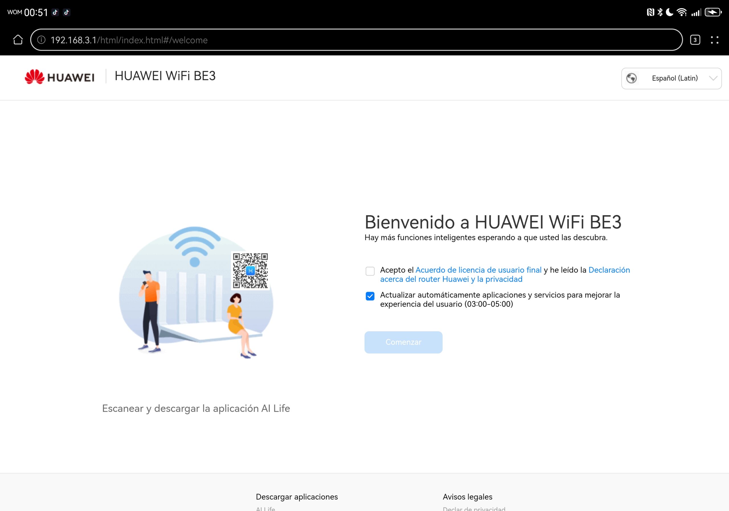 Desde esta plataforma web es posible completar la configuración básica y realizar ajustes adicionales, o bien escanear un código QR para descargar la aplicación HUAWEI AI Life.
